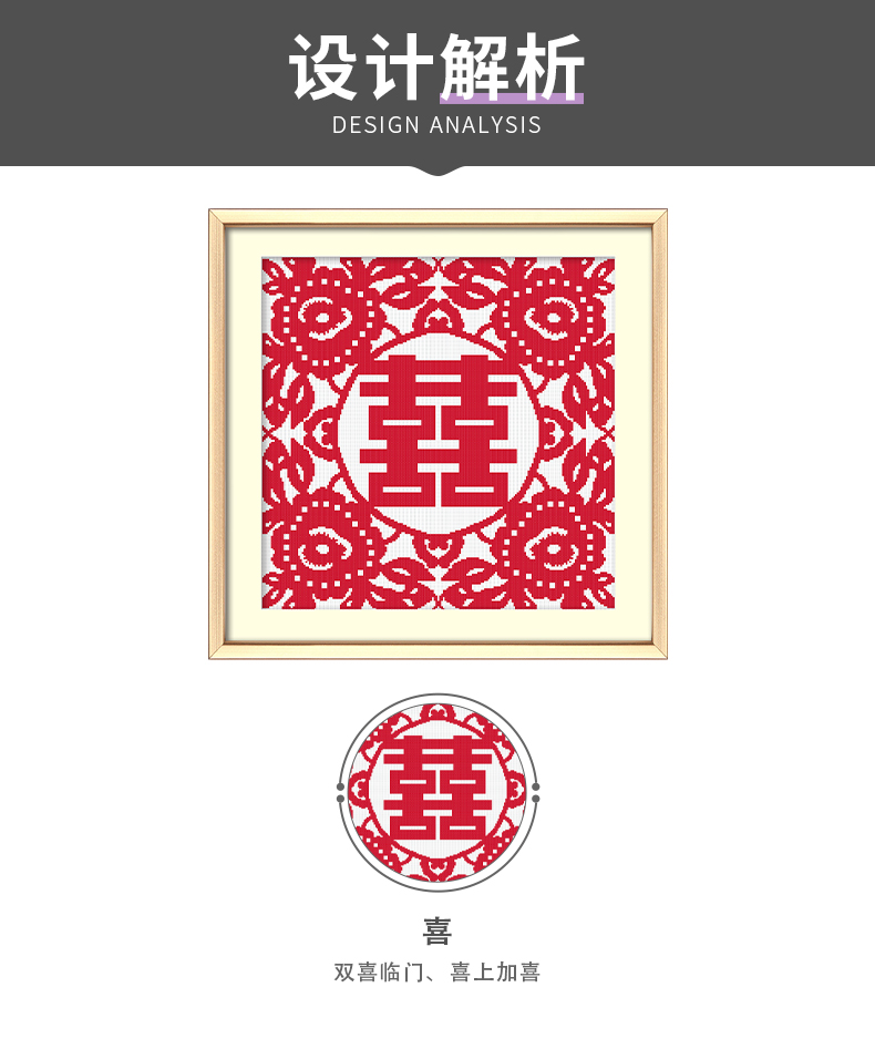 KS十字繡2023年新款手工棉線繡喜慶結婚抱枕客廳掛畫喜上加喜