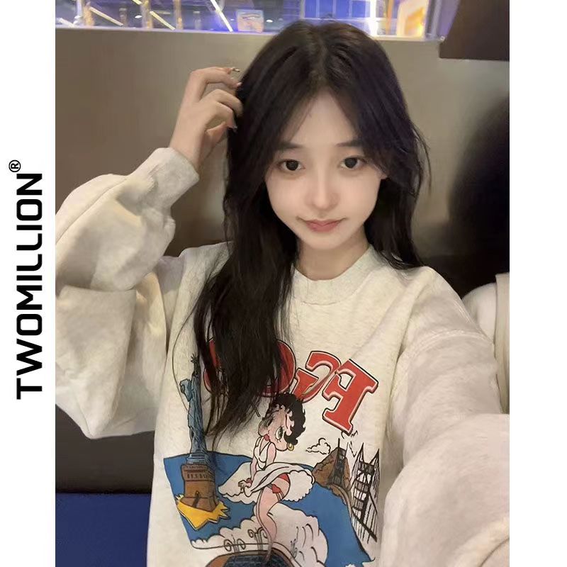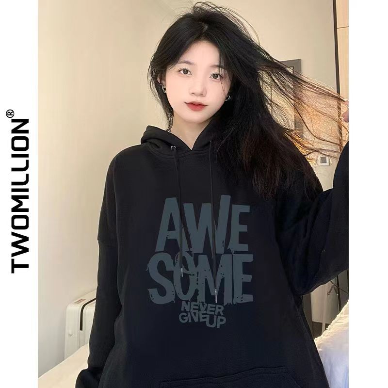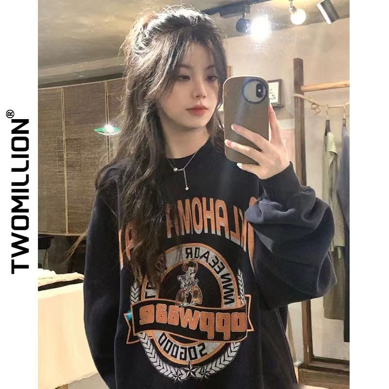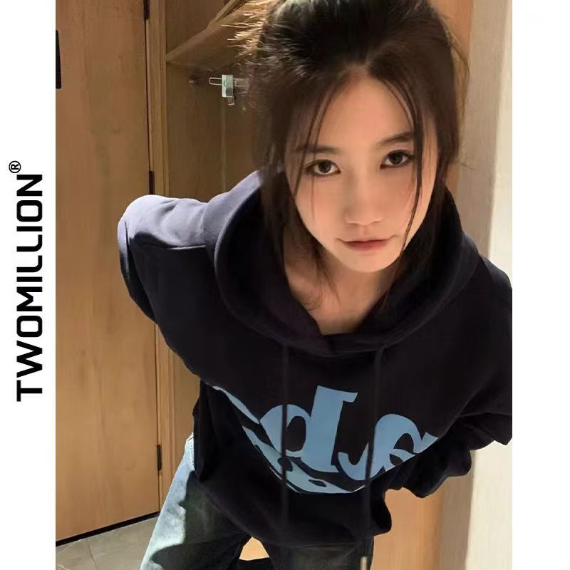 秋冬季2023年新款慵懶風美式字母上衣寬松顯瘦加絨情侶裝衛衣女
