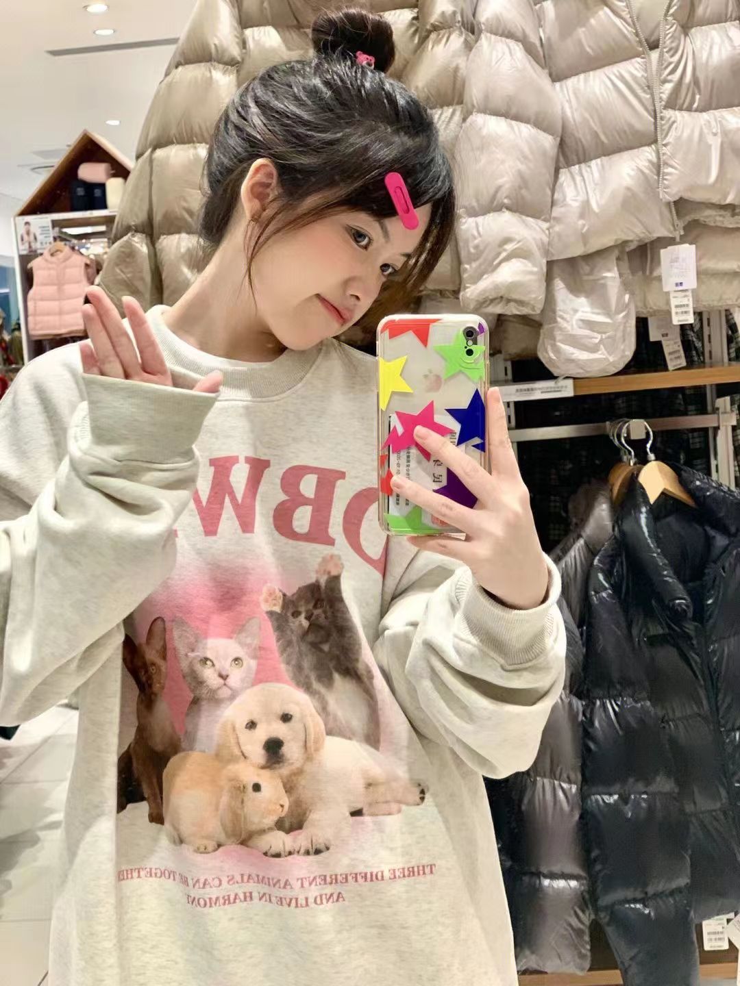 JWP真維斯女裝圓領衛衣春秋季潮流可愛印花長袖套頭體恤上衣衣服