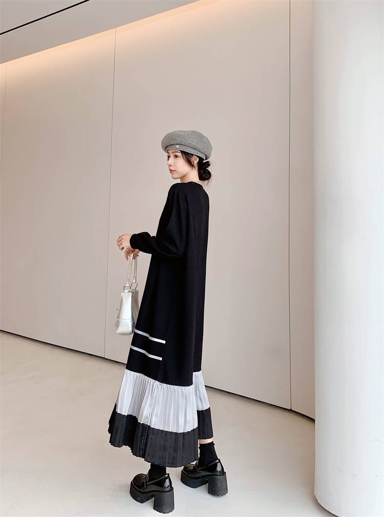 撞色小眾設計連衣裙2023秋季新款韓版大碼慵懶風顯瘦插肩袖衛衣裙
