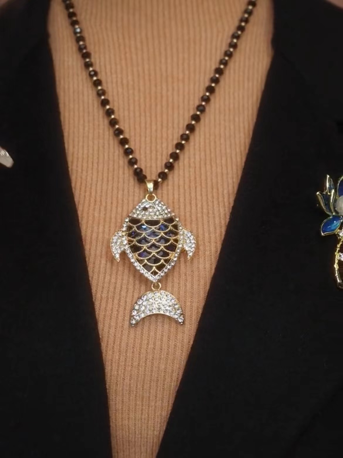紅色錦鯉毛衣鏈長款高級感年年有魚項鏈2023年新款潮百搭秋冬吊墜