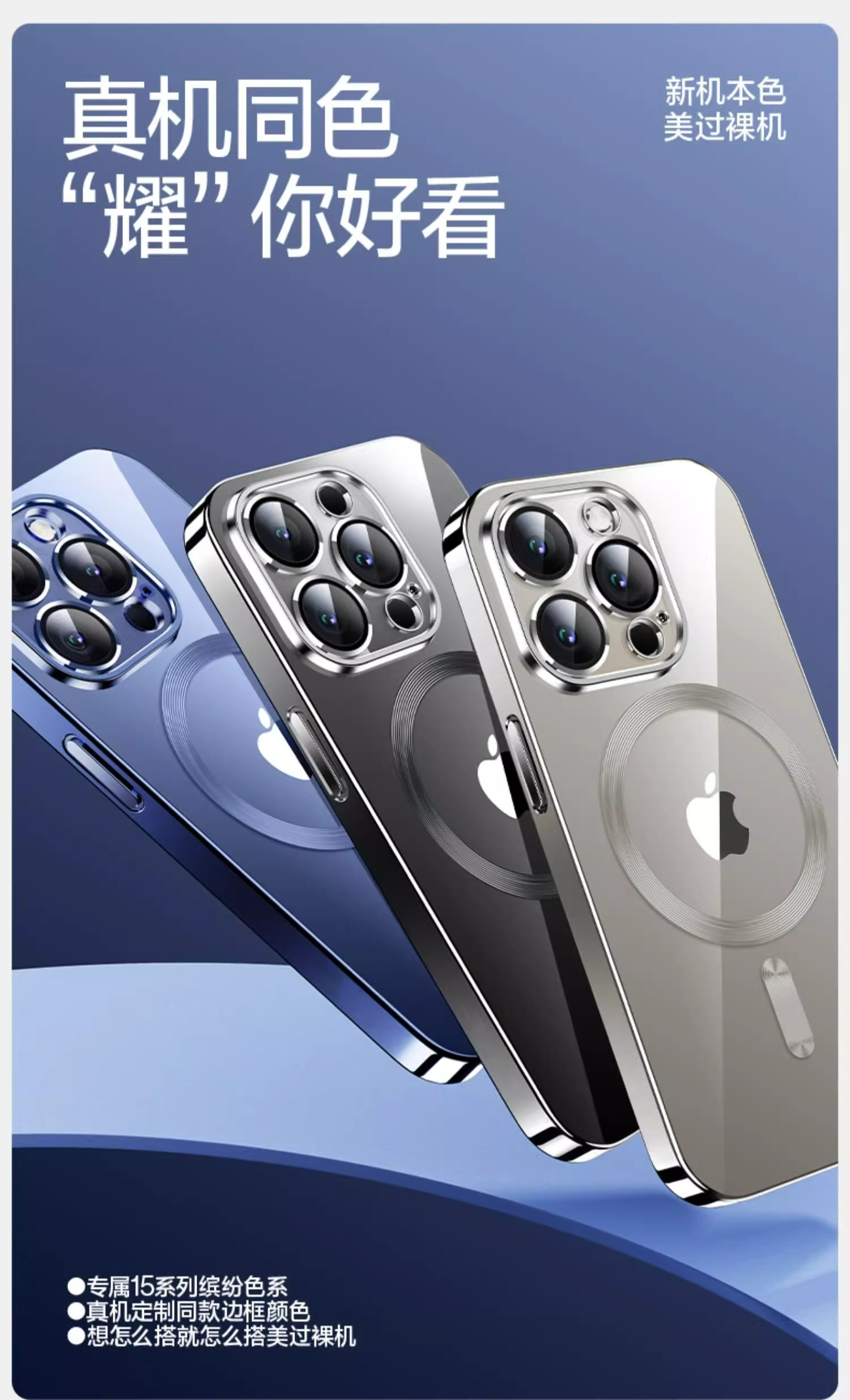 適用蘋果15Pro磁吸手機殼iPhone14promax新款MagSafe無線充電13pm透明12plus保護套超薄por全包防摔高級感的i
