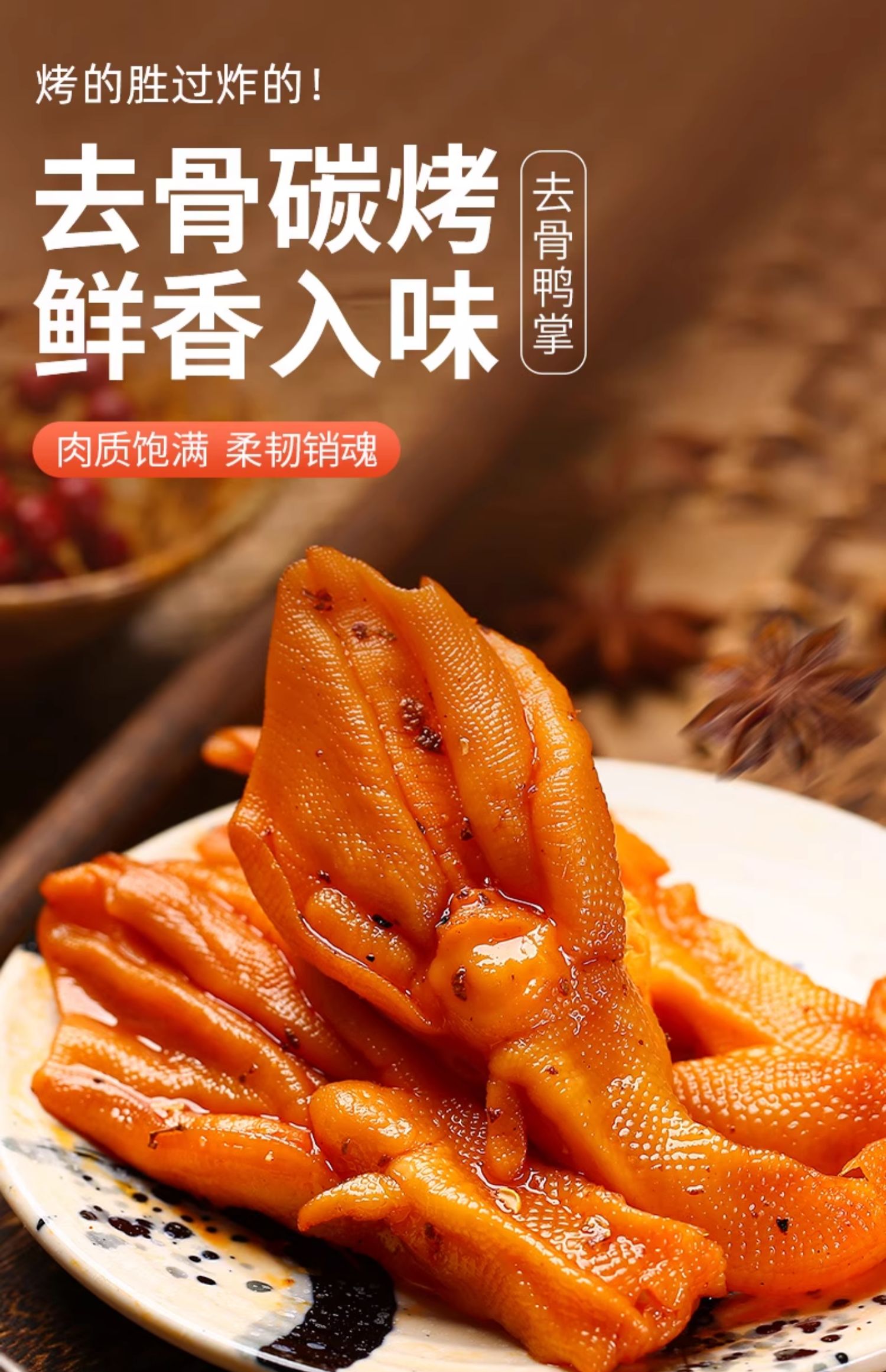 無骨派鮮辣鴨掌碳烤無骨鴨爪去骨鴨肉零食辦公網紅休閑即食小包裝