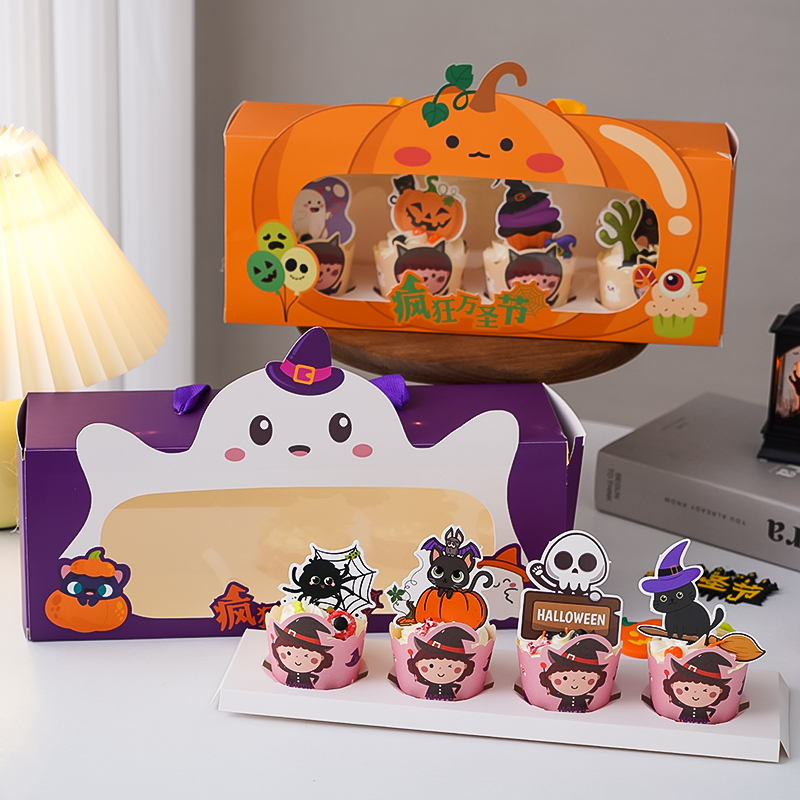 萬圣節馬芬杯蛋糕裝飾南瓜幽靈手提盒紙杯插件瘋狂萬圣節派對裝扮