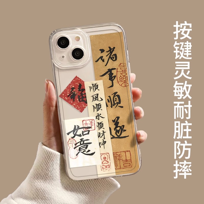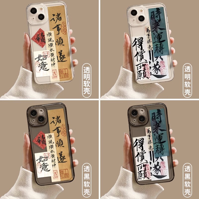 適用于書法手機殼蘋果15plus透明iPhone15pro時來運轉華為暢享9vivos9oppofindx3國潮小米紅米9a新款一加9rt