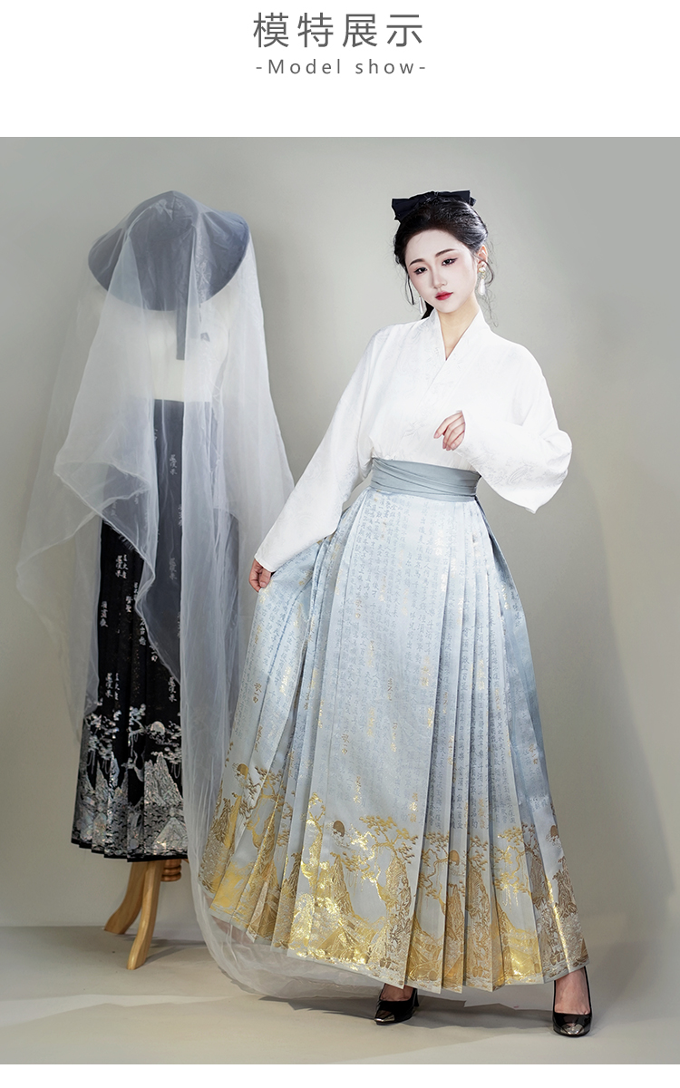 丞紀司【雪蓮花】原創明制織金馬面裙改良飛機袖新中式女日常通勤