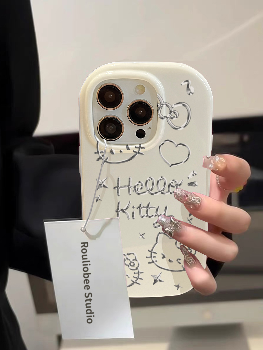 簡約線條凱蒂貓適用蘋果15promax手機殼新款高級感14可愛創意13/12全包plus防摔iphone15pro小眾女日韓ins軟
