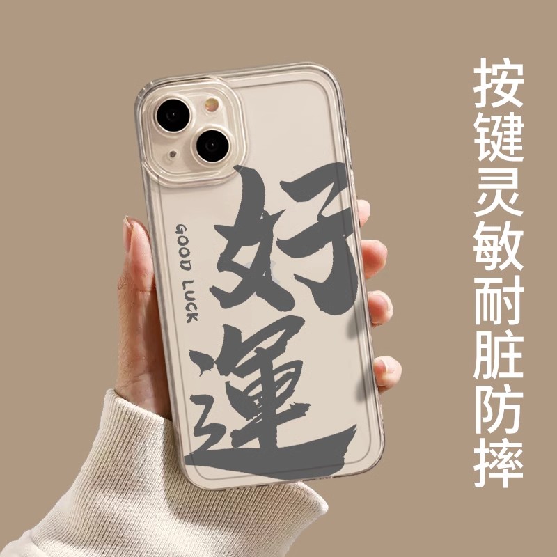 適用于個性文字手機殼蘋果15plus發財iPhone15promax華為mate20pro好運vivoiqooneo5sopporealmegt2pro國風小