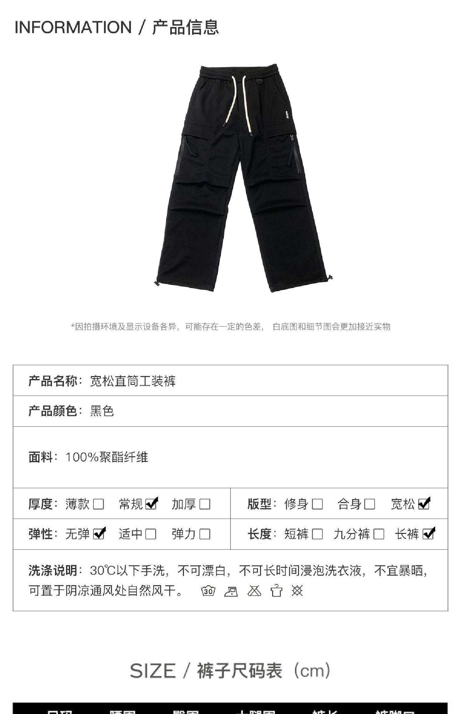 青年潮流大口袋機能風休閑褲男寬松直筒抽繩純色多口袋秋款工裝褲