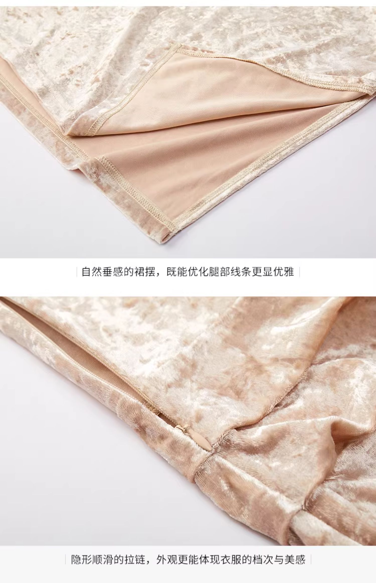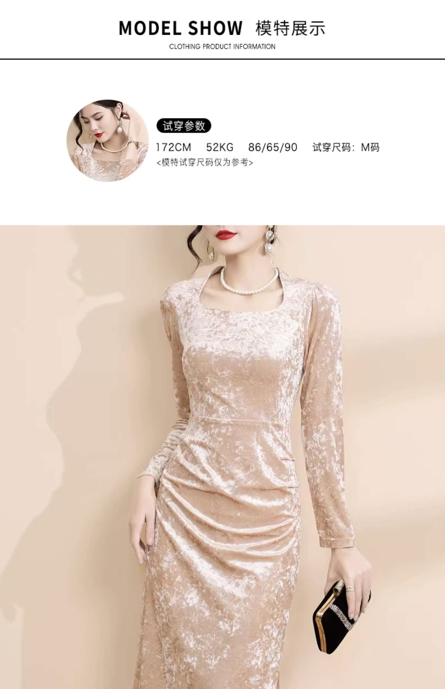 高級感金絲絨拼接連衣裙女秋冬2023新款氣質修身收腰包臀開叉裙子