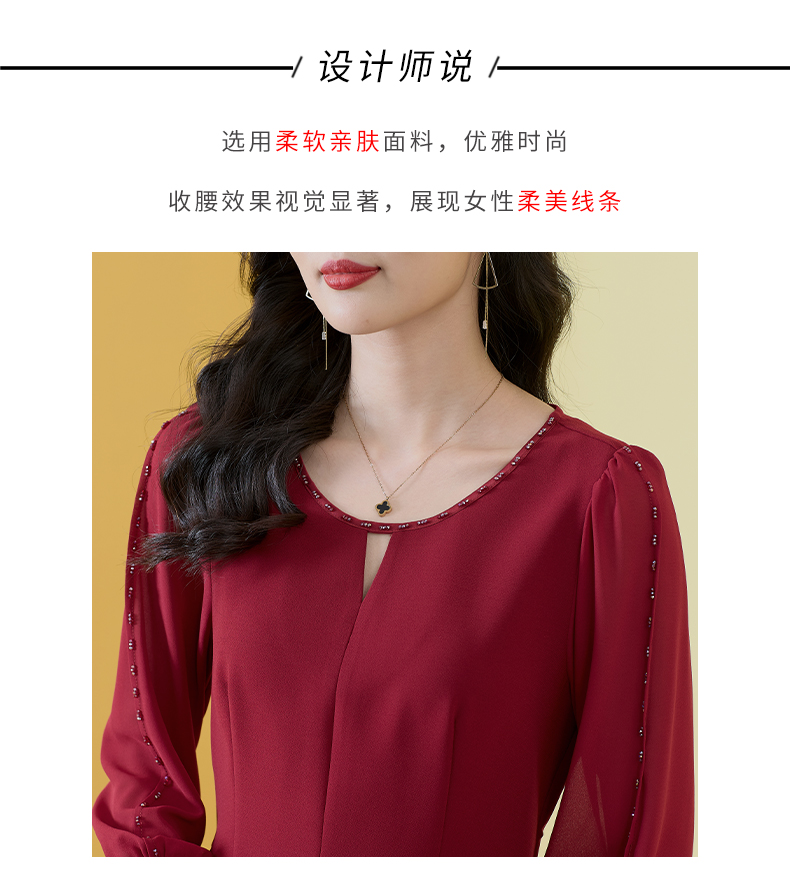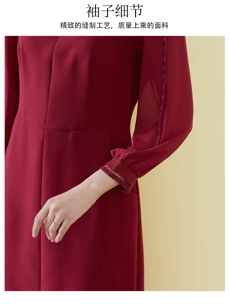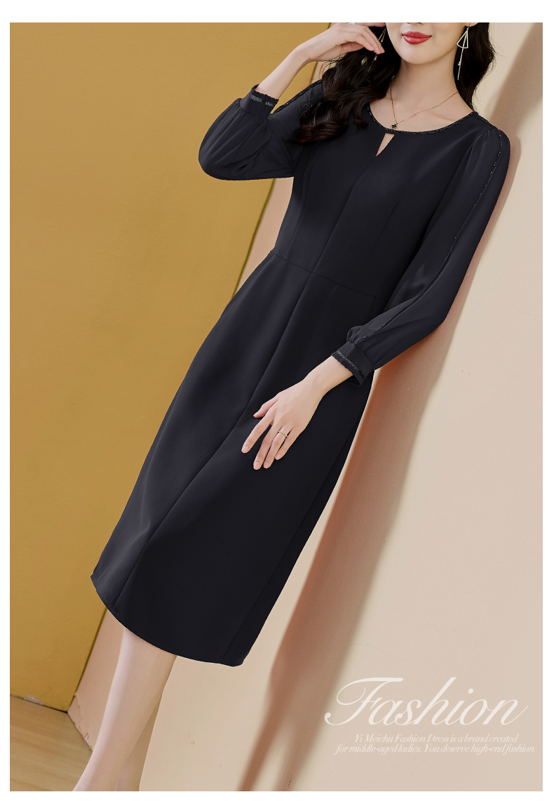 高端釘珠收腰顯瘦連衣裙女2023秋冬新款正式場合長袖長款配大衣
