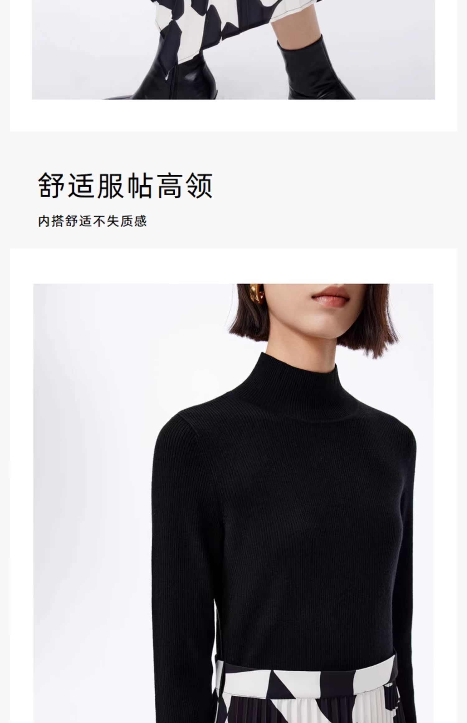 LILY2023冬新款女裝含綿羊毛舒適高領設計感假兩件優雅通勤連衣裙