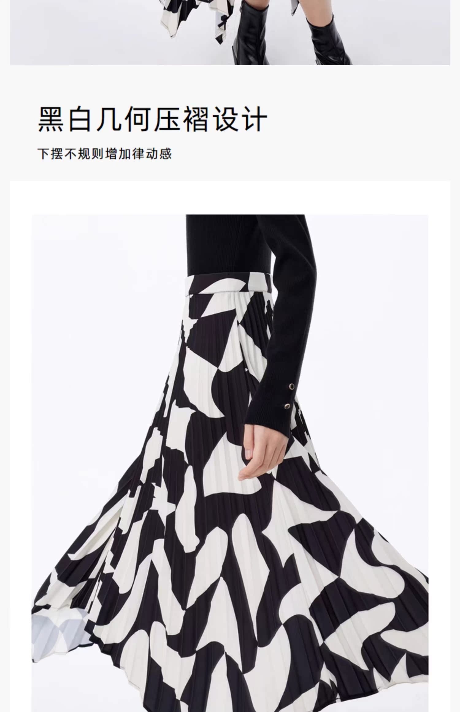 LILY2023秋新款女裝復古氣質通勤顯瘦高腰中長冷淡系獨特別致裙子