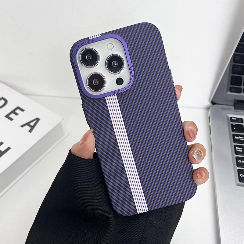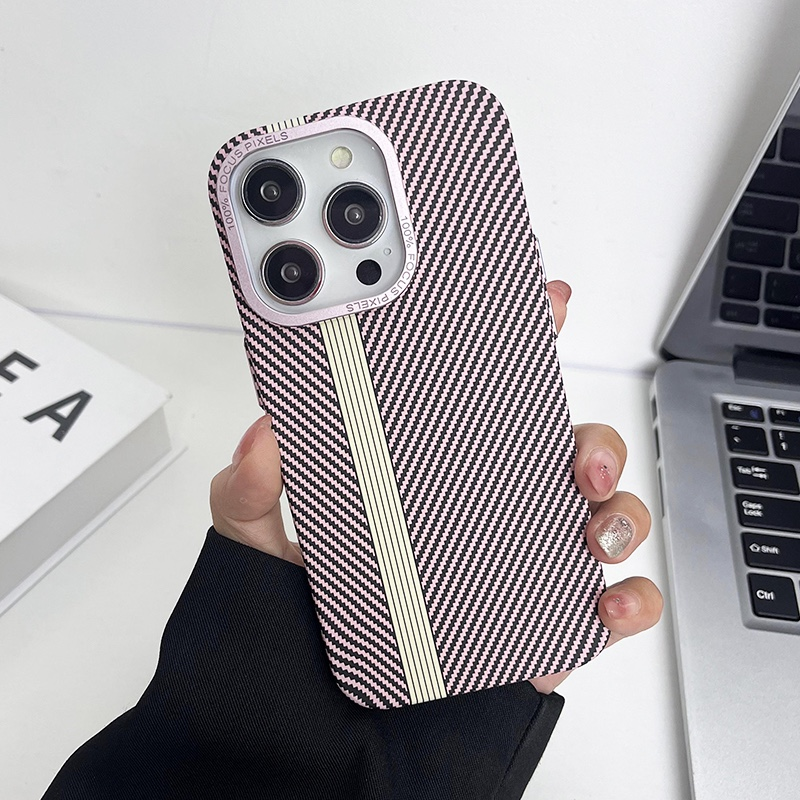 碳纖維紋適用蘋果15手機殼iPhone14ProMax凱夫拉撞色條紋13立體浮雕12金屬鏡頭商務潮流保護套plus男女硬殼PC