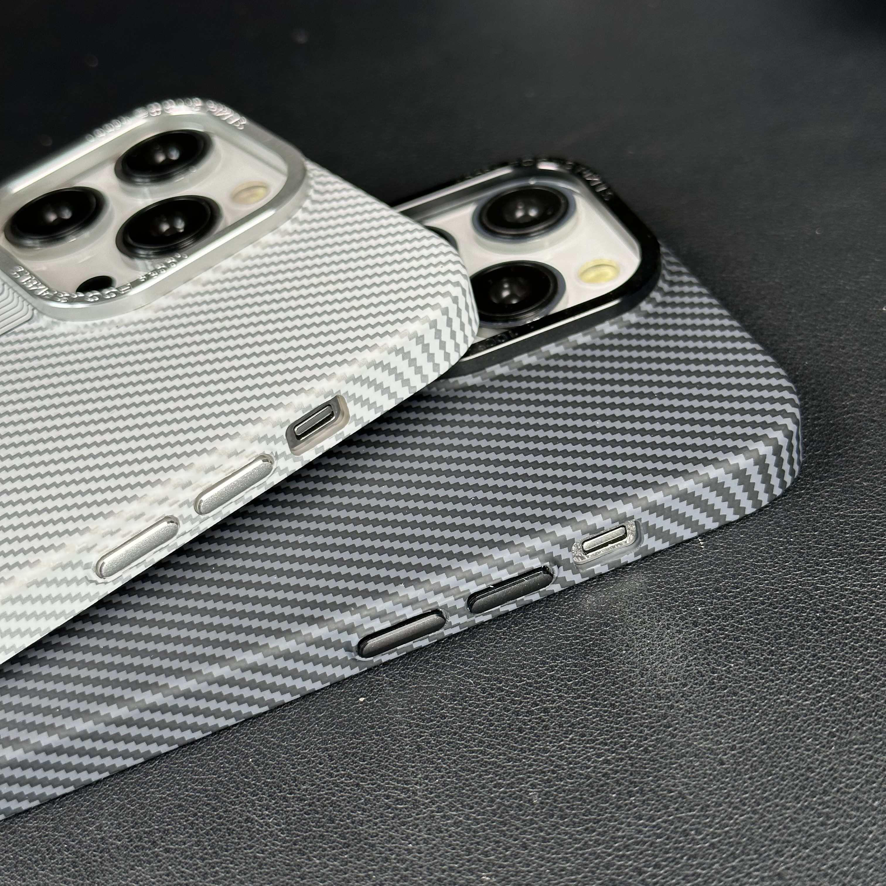 磁吸凱夫拉碳纖維紋適用蘋果15Promax手機殼14plus金屬鏡頭13輕薄12商務3D浮雕條紋磨砂高檔PC硬殼原創新款男