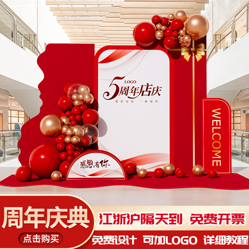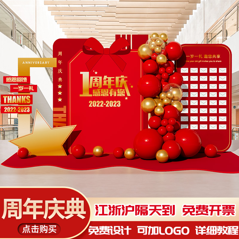 周年店慶開業氣氛布置紅包背景墻活動氣球場景裝飾商場美容院kt板