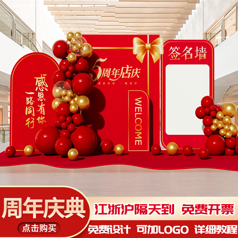 開業周年店慶簽名背景墻氣氛布置活動裝飾場景商場美容院氣球kt板