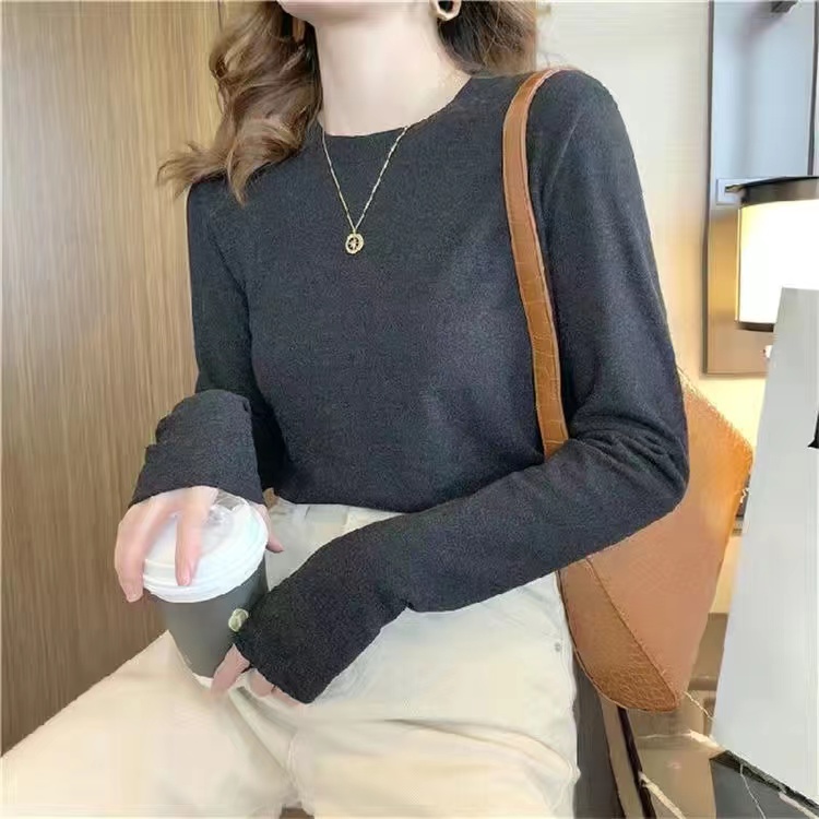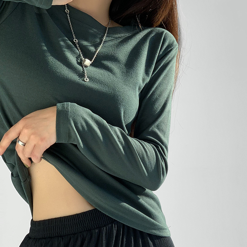 FN-3新款半高領純色時尚百搭顯瘦打底衫丅恤秋季節氣質簡約長袖