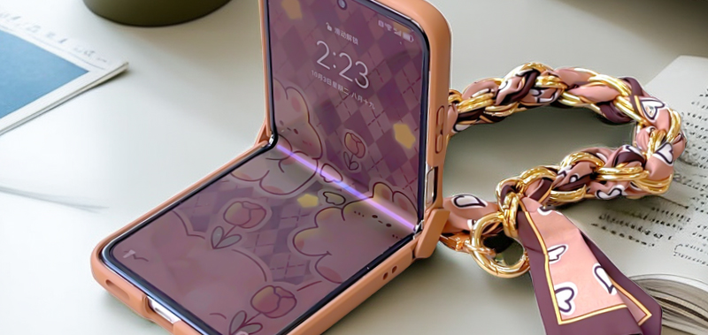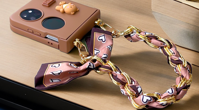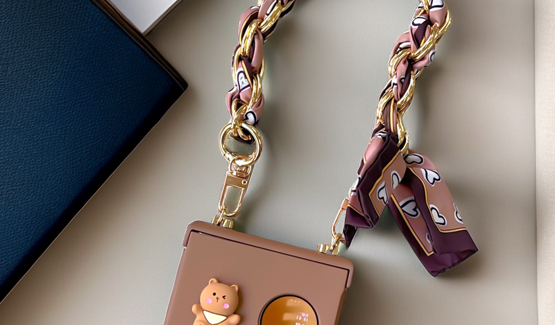 焦糖色適用華為p50pocket手機殼絲巾掛繩鏈條防摔時尚韓風卡通可愛小熊寶盒折疊屏翻蓋新款pocket s全包鉸鏈
