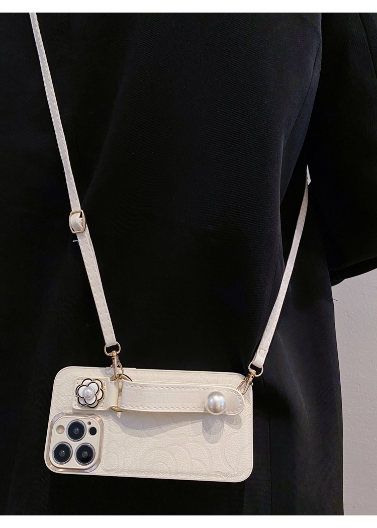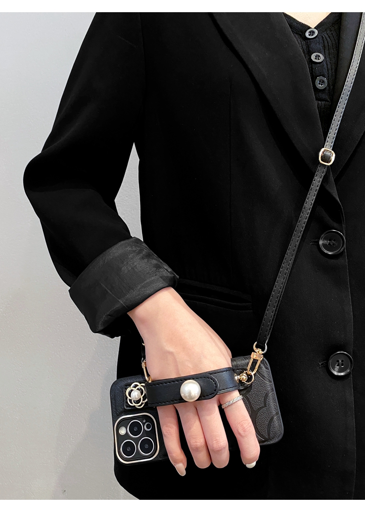 小香風珍珠腕帶適用小米13pro手機殼12pro輕奢山茶花13可背帶紅米k60pro斜挎掛繩網紅同款k60至尊皮質小眾