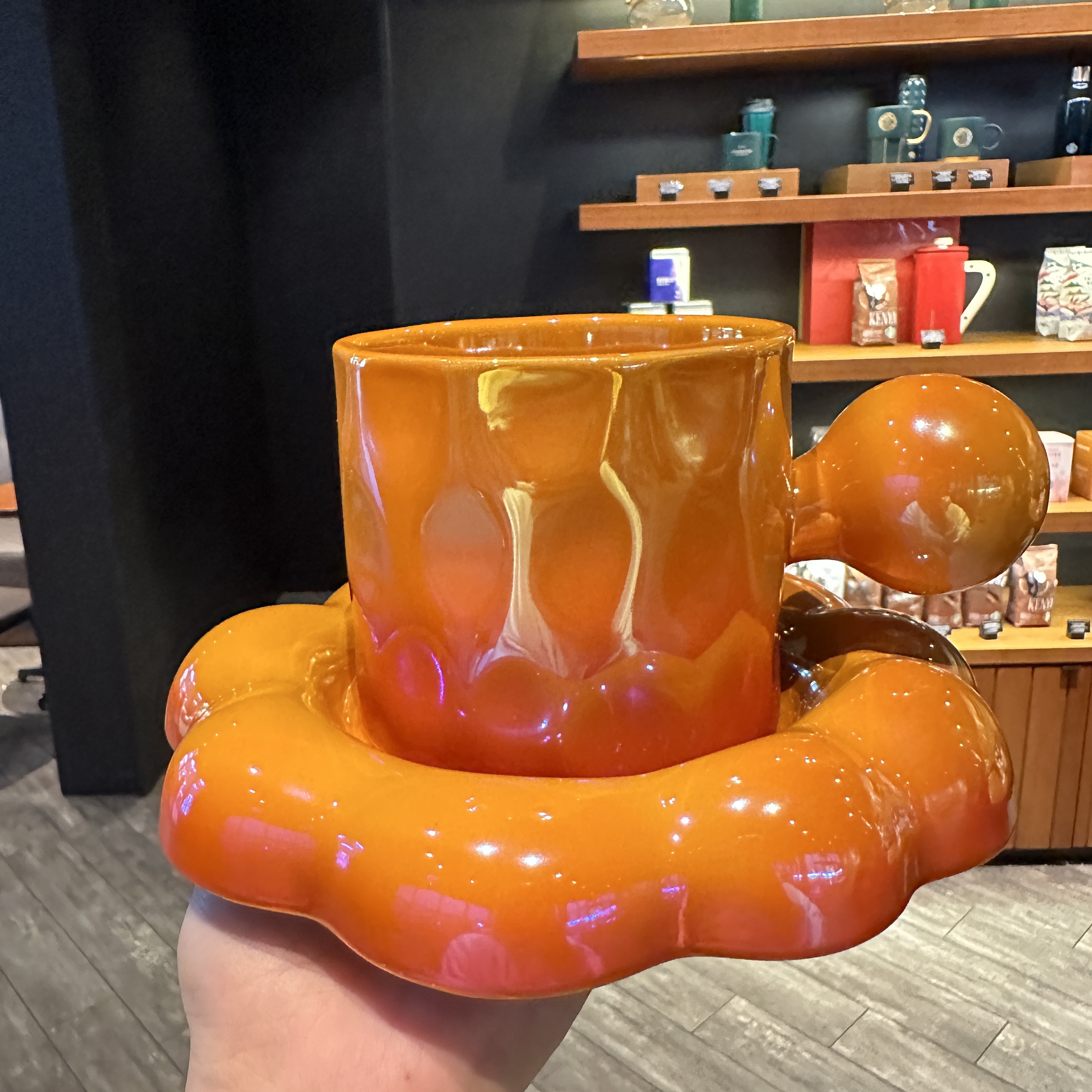 漸變鐳射花朵輕奢咖啡杯碟精致創意大容量陶瓷馬克杯生日禮物女生