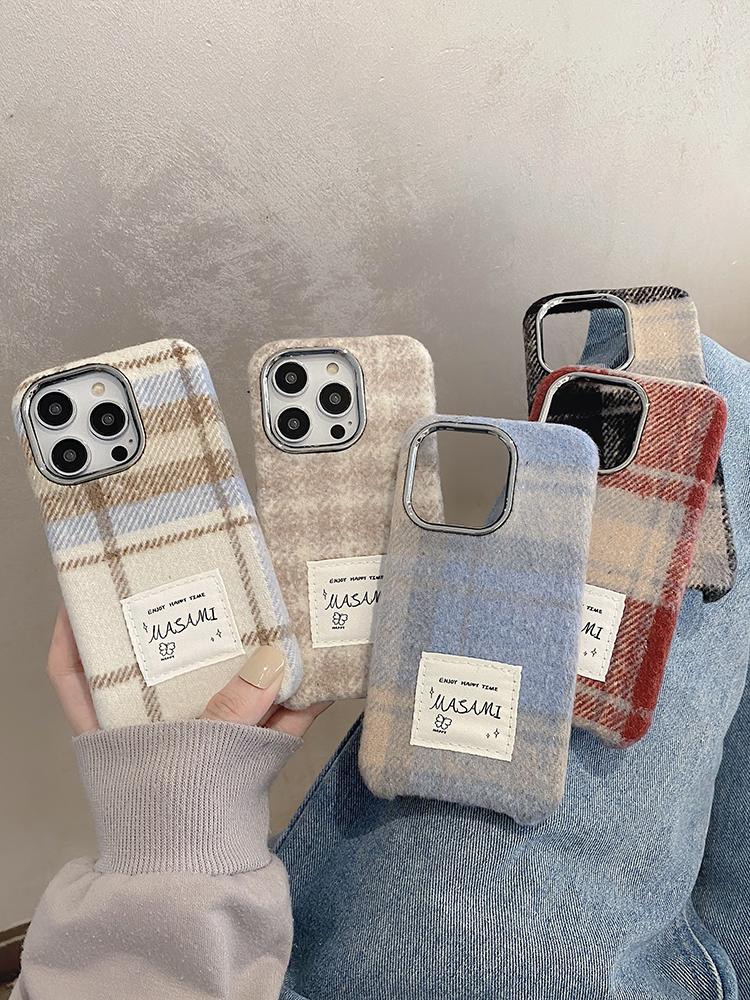 ins秋冬復古格紋絨布適用蘋果15手機殼iphone14pro暖手13promax小眾高級感12新款11超火max網紅可愛plus毛絨