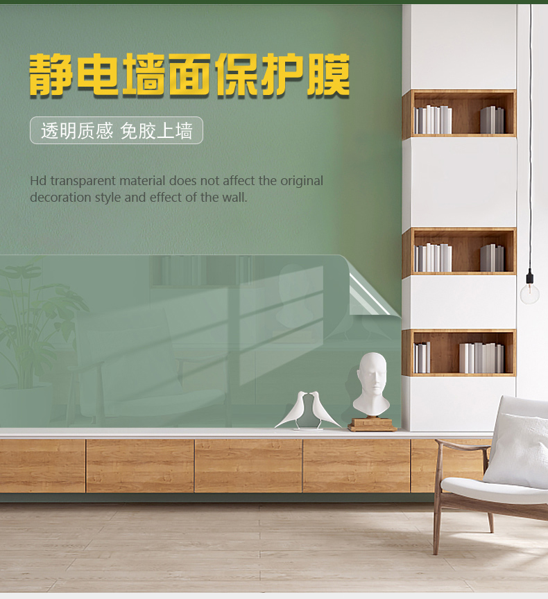 廚房防油貼紙乳膠漆墻面透明保護膜靜電不傷白墻貼防踢臟防潮貼紙