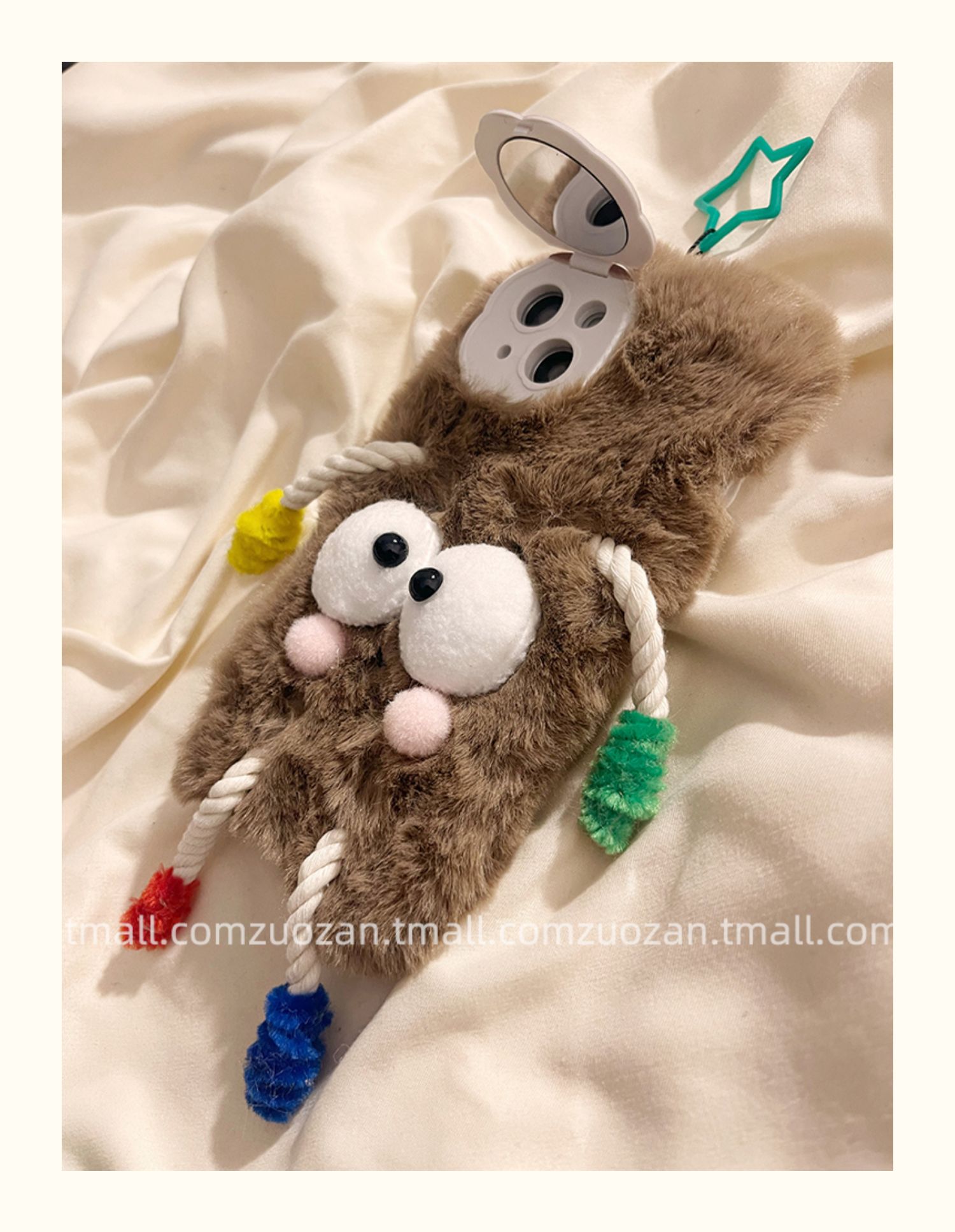 秋冬可愛立體毛絨怪適用蘋果14毛茸茸手機殼iPhone13ProMax新款15pro防摔12女款11全包14pro硅膠情侶小眾軟殼