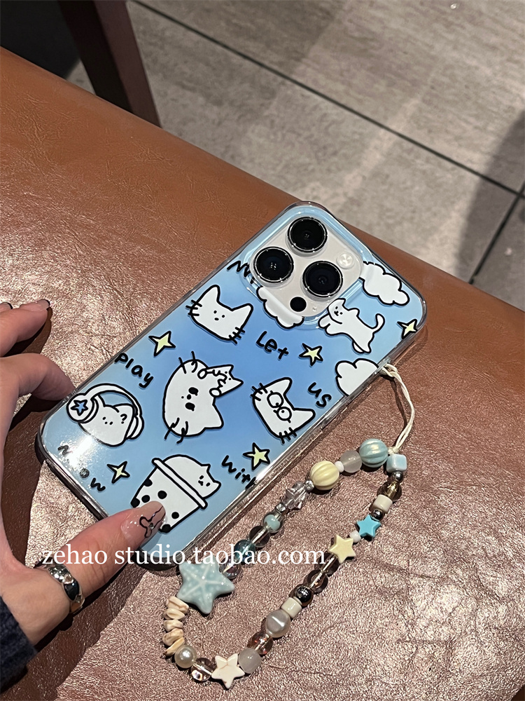 ins可愛少女夢幻奶油貓咪適用11蘋果15ProMax手機殼iPhone12全包14新款12Pro韓風鏈條軟14Promax防摔保護套13
