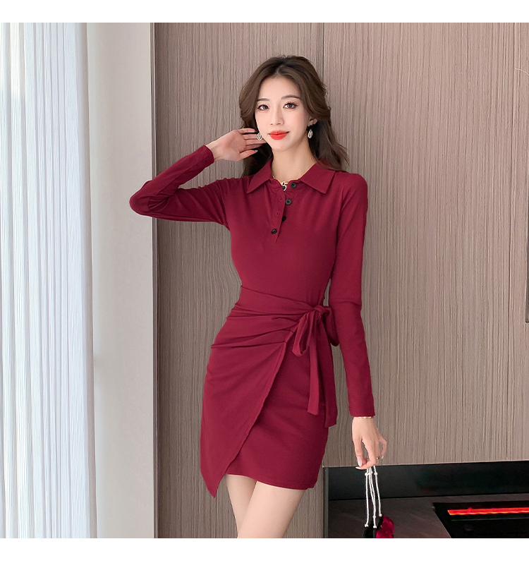 秋裝氣質性感加絨加厚綁帶連衣裙