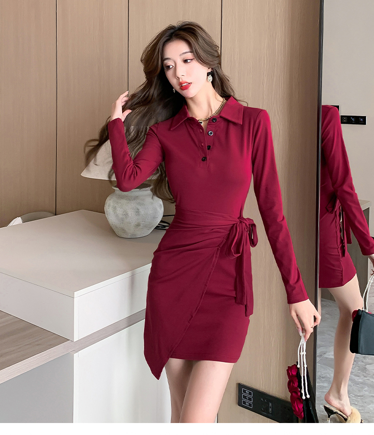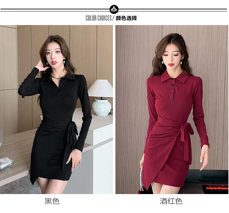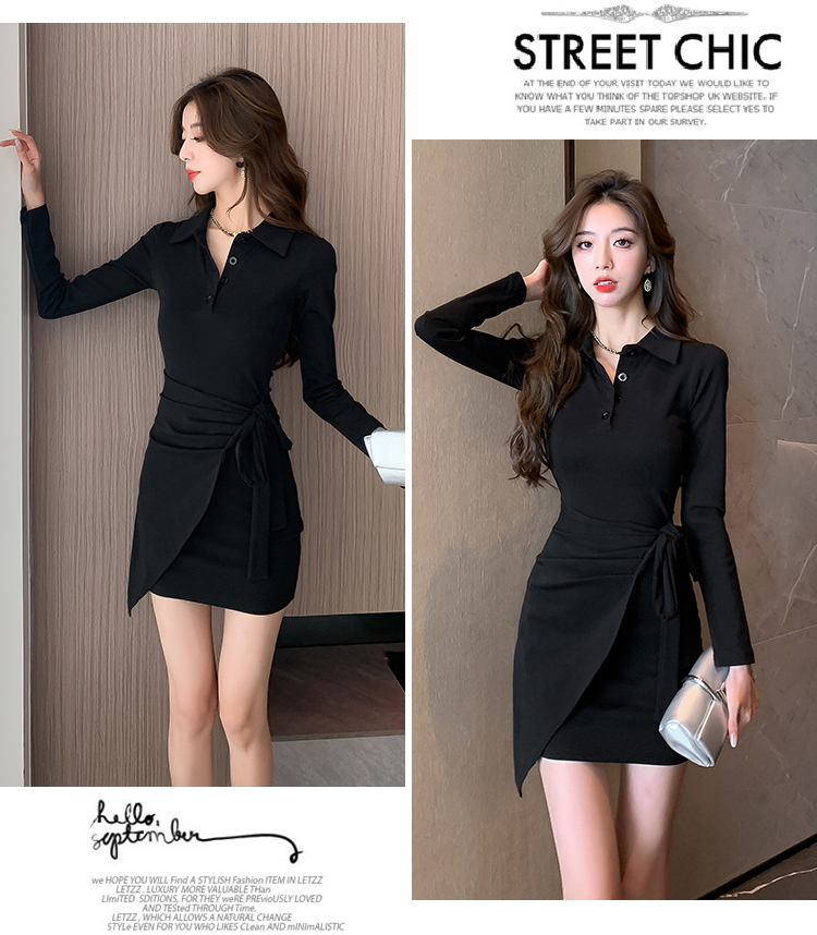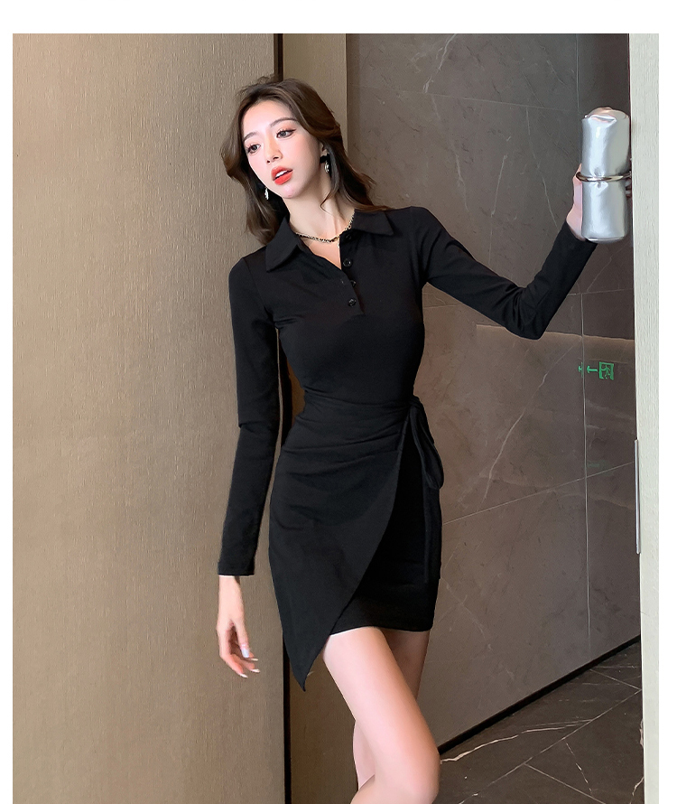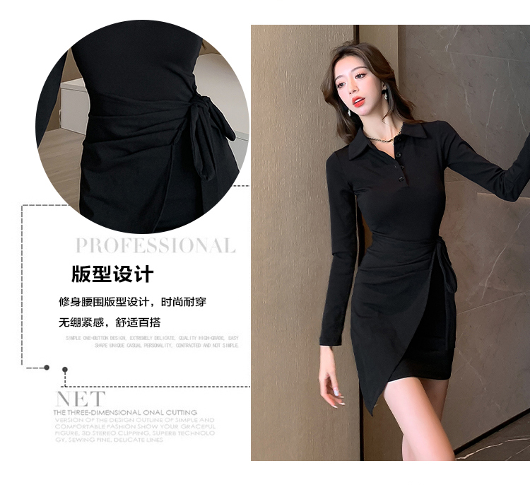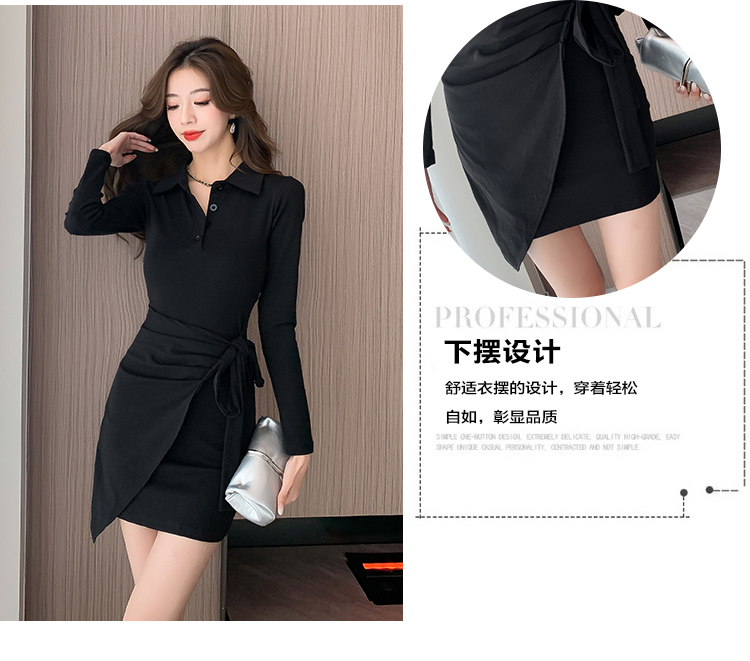 氣質連衣裙設計感綁帶收腰顯瘦遮肚子秋裝性感修身包臀POLO裙子女