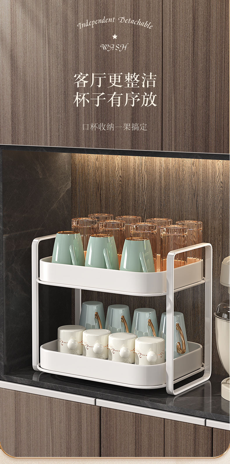 日本杯架杯子收納置物架雙層茶杯架子茶具架可瀝水托盤桌面放水杯