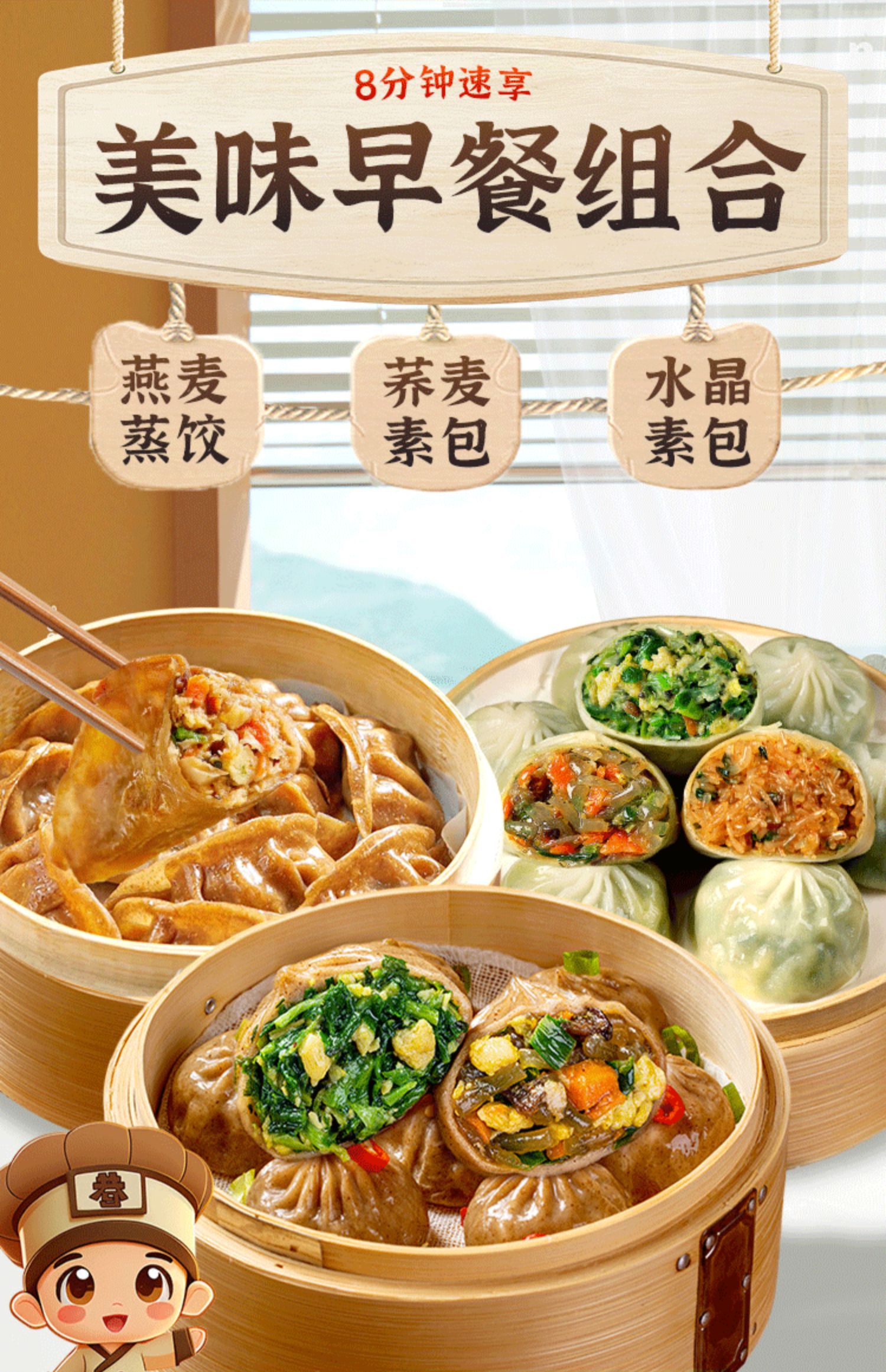包子蕎麥早餐半成品懶人冷凍速食面點水晶薄皮素包子蕎麥魔芋蒸餃
