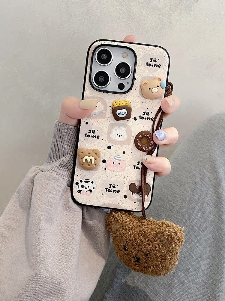 趣味可愛卡通餅干插畫適用蘋果15pro手機殼iphone14小眾高級感13promax情侶12網紅新款11簡約max全包保護套軟