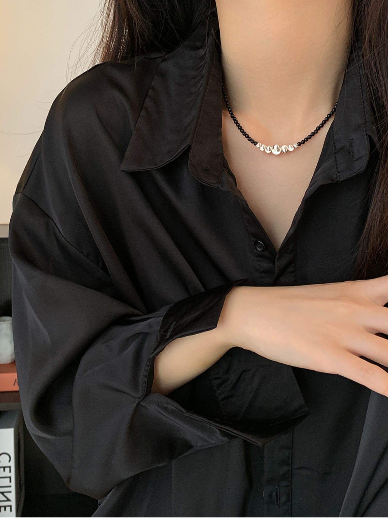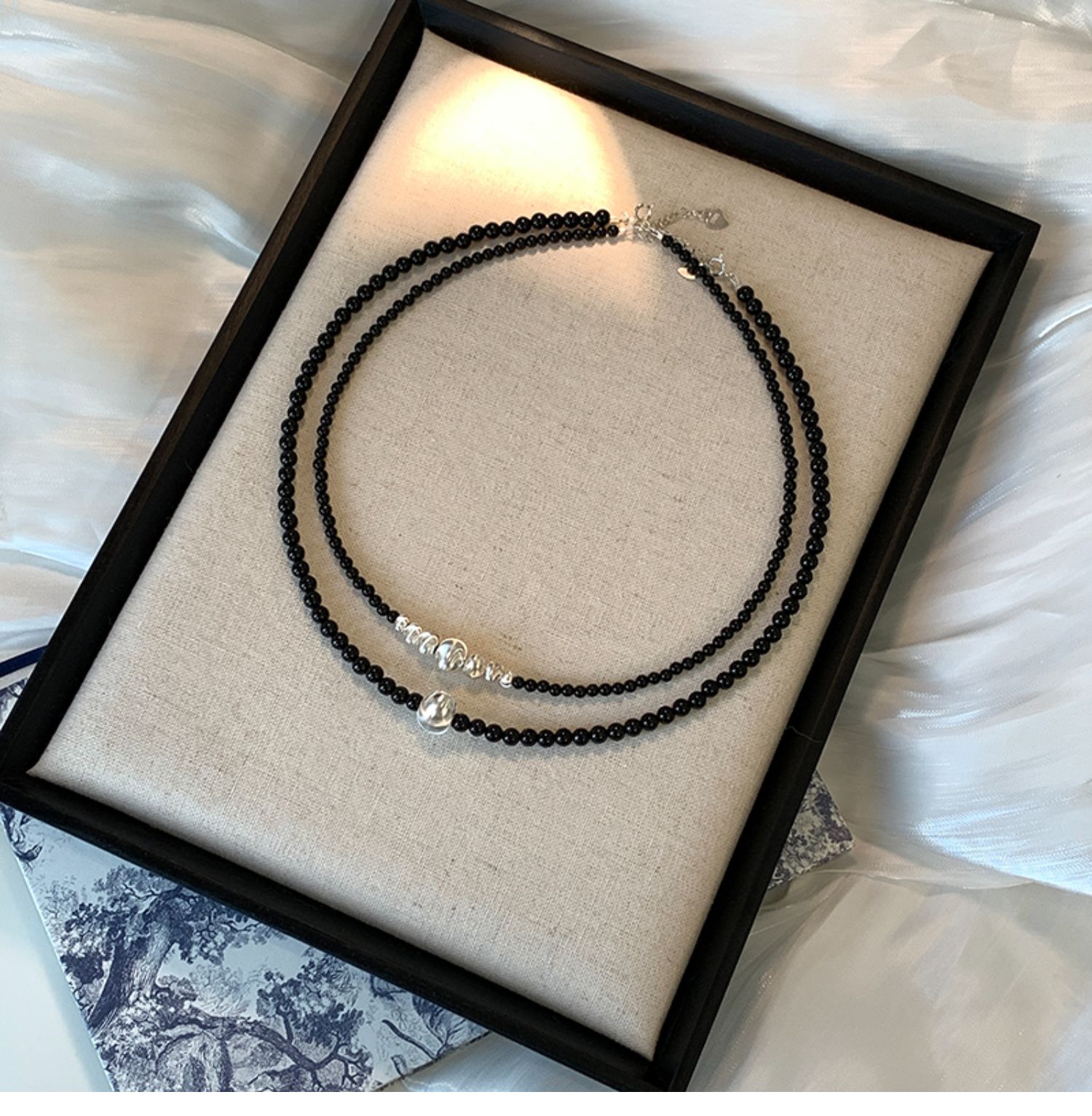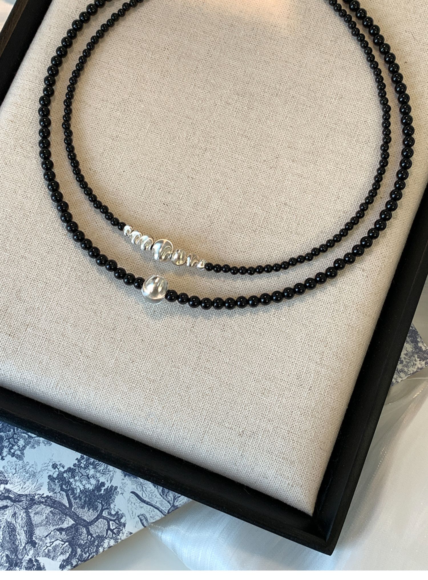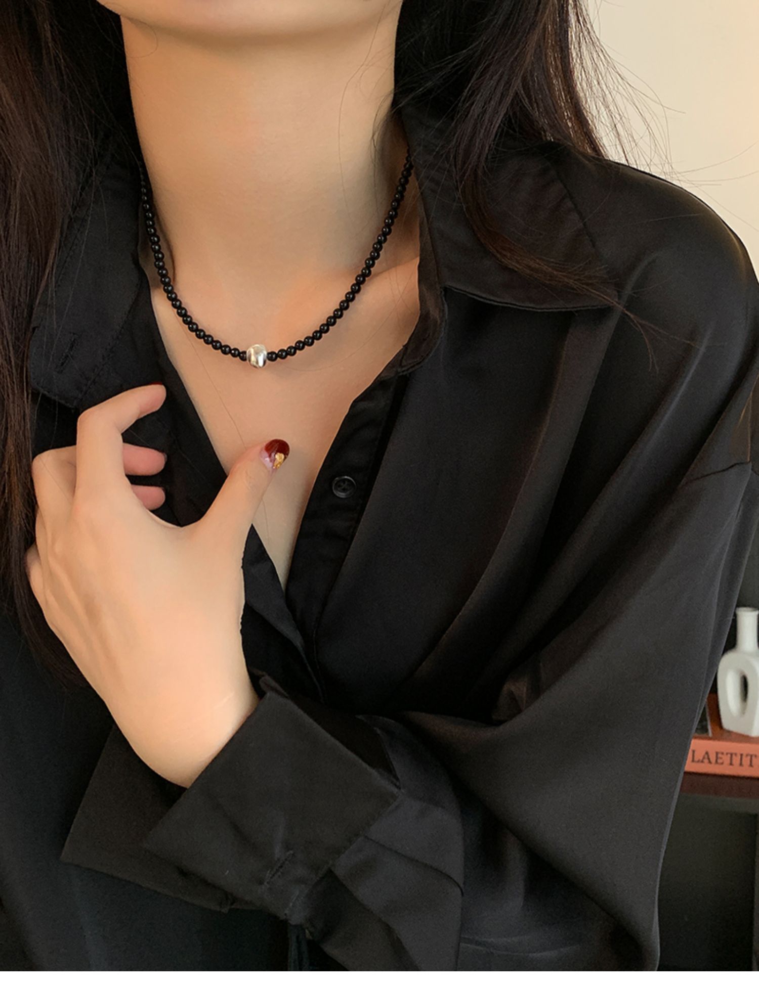 925純銀黑尖晶貓眼珠吊墜項鏈女鎖骨鏈輕奢時尚新重約9g BCX3728