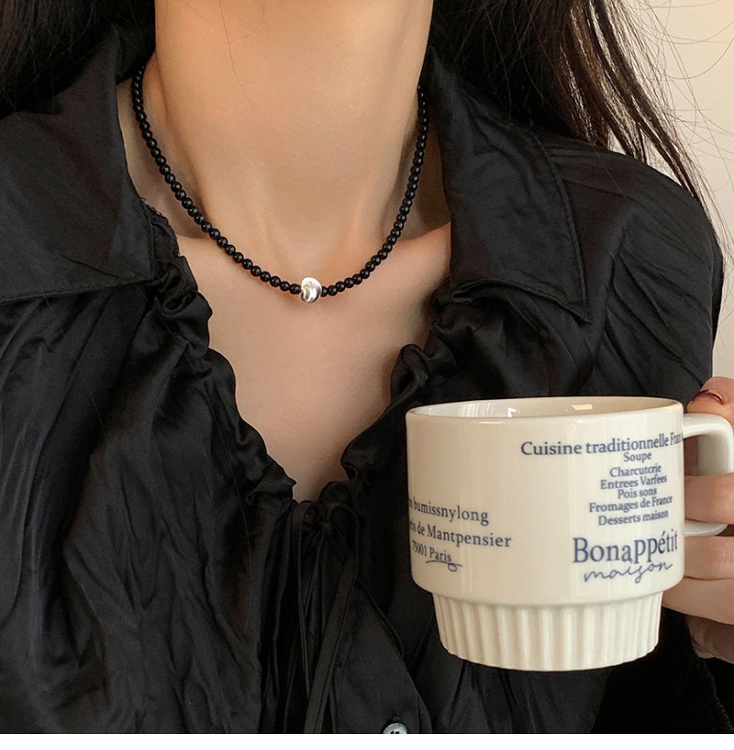 迷度通體925純銀質感絲光拉絲貓眼項鏈天然瑪瑙鎖骨鏈設計高級感