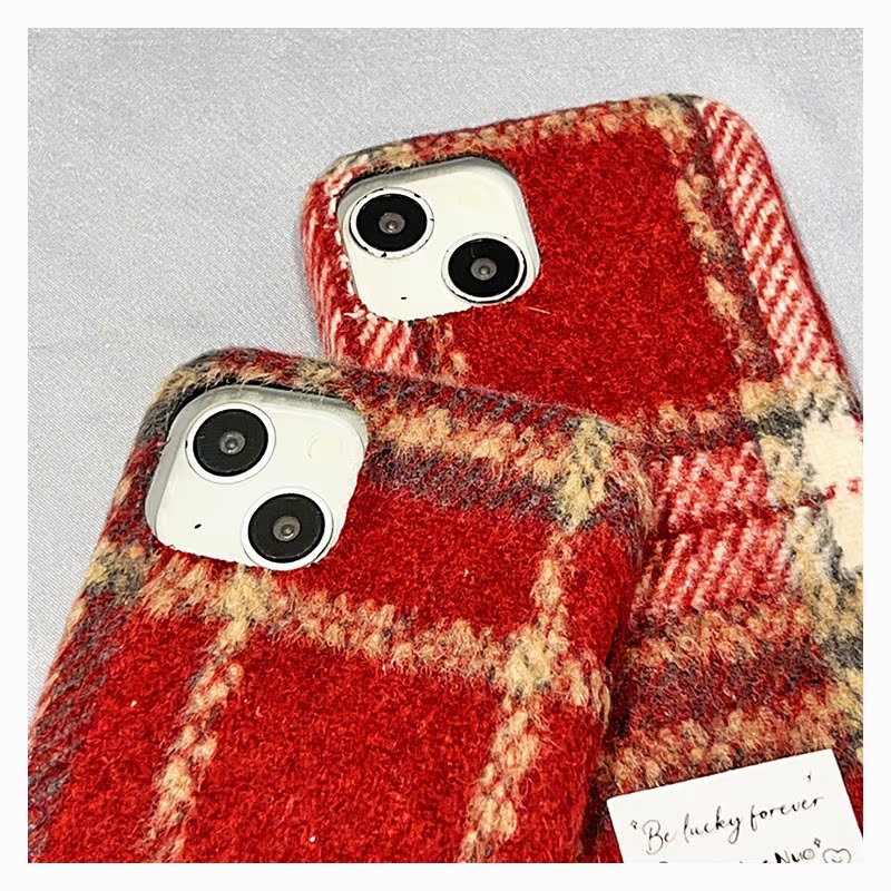 紅色毛絨便簽格子適用蘋果15promax手機殼iphone14女款15pro新款13可愛創意少女高級12軟邊硬殼pro防摔11硅膠