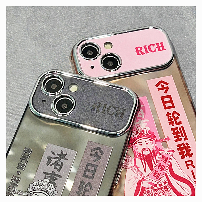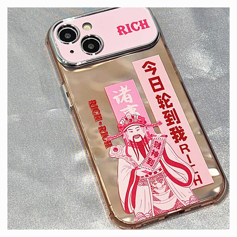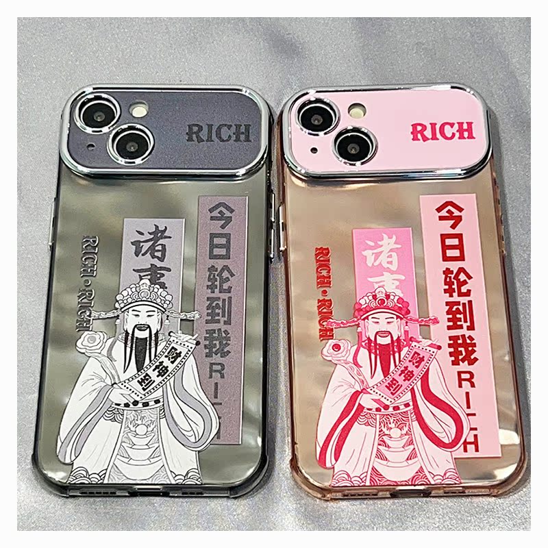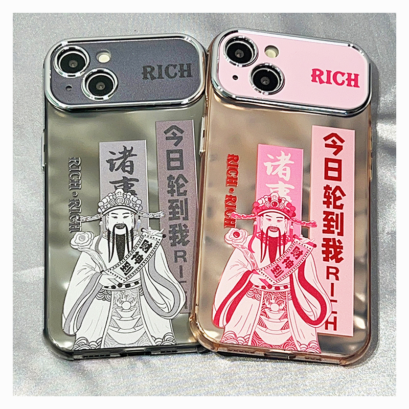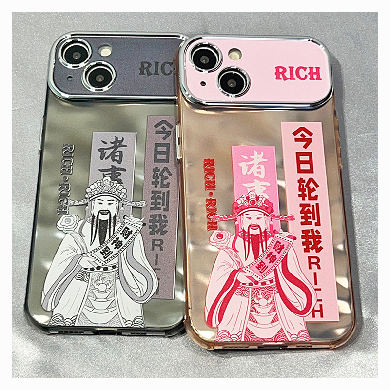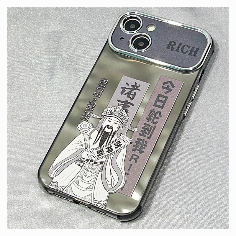 電鍍大視窗文字財神爺適用蘋果15promax手機殼iphone14女款15pro新款13個性創意趣味12軟邊硬殼pro防摔11硅膠