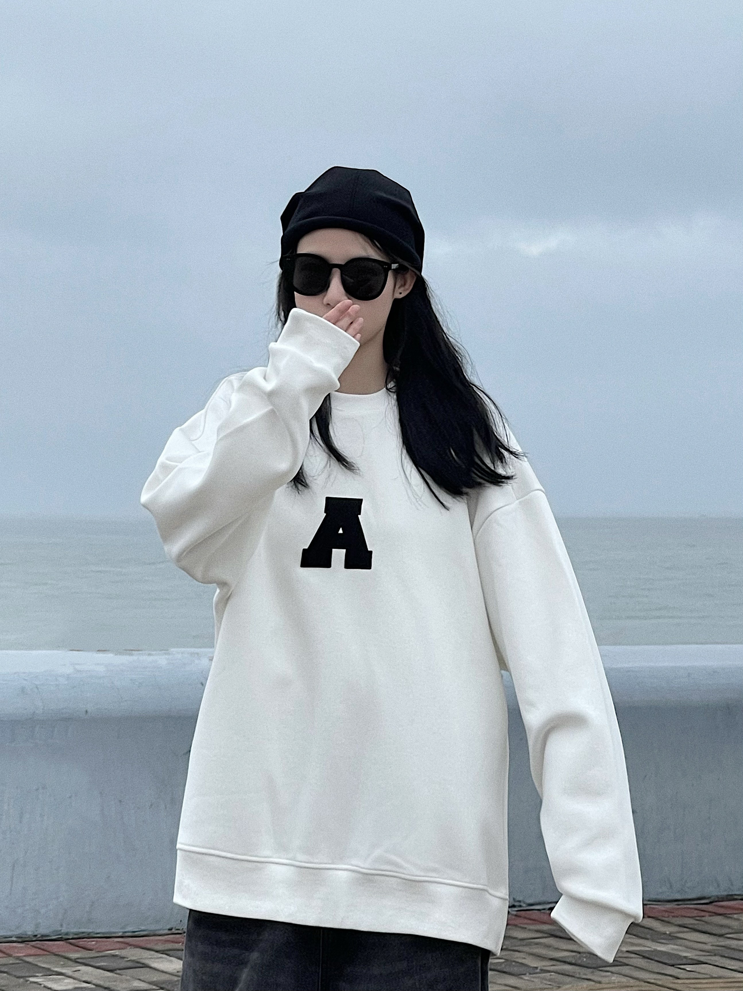 2023今年流行的加絨加厚圓領正肩衛衣女小個子美拉德穿搭上衣女潮