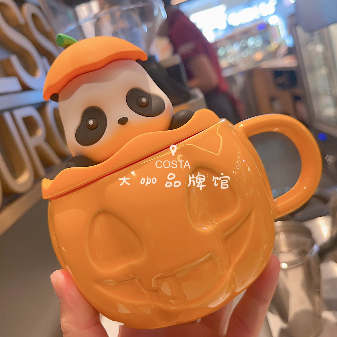 costa胖噠幼萬圣節魔法陶瓷杯南瓜杯熊貓硅膠蓋子大容量杯500ml