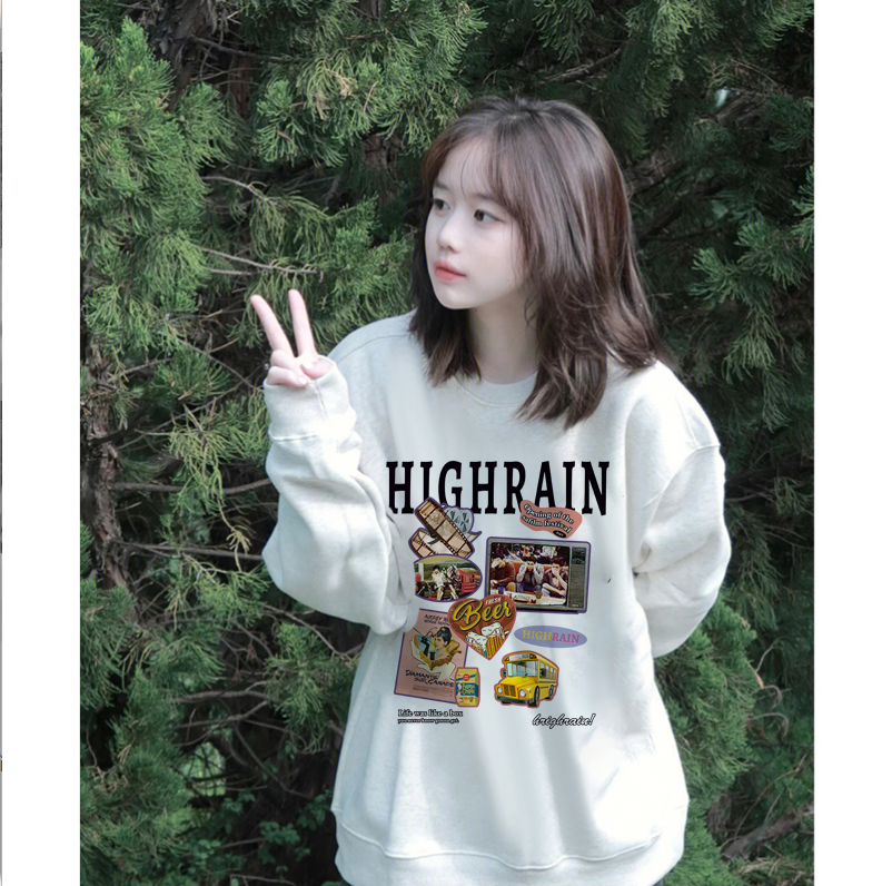 圓領卡通長袖衛衣女美式設計感小眾春秋季寬松大碼百搭外套上衣潮