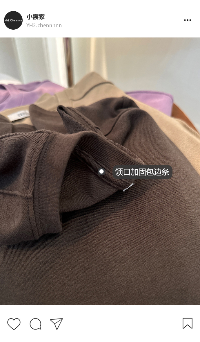 后領包本料通肩條袖口+下擺雙針高注意車線斷裂