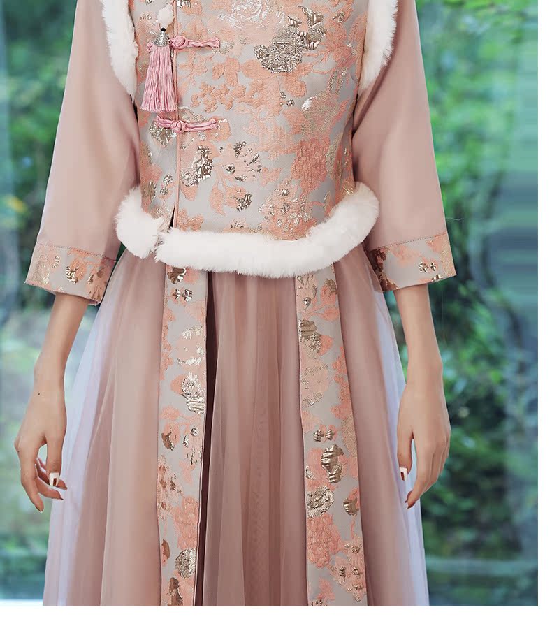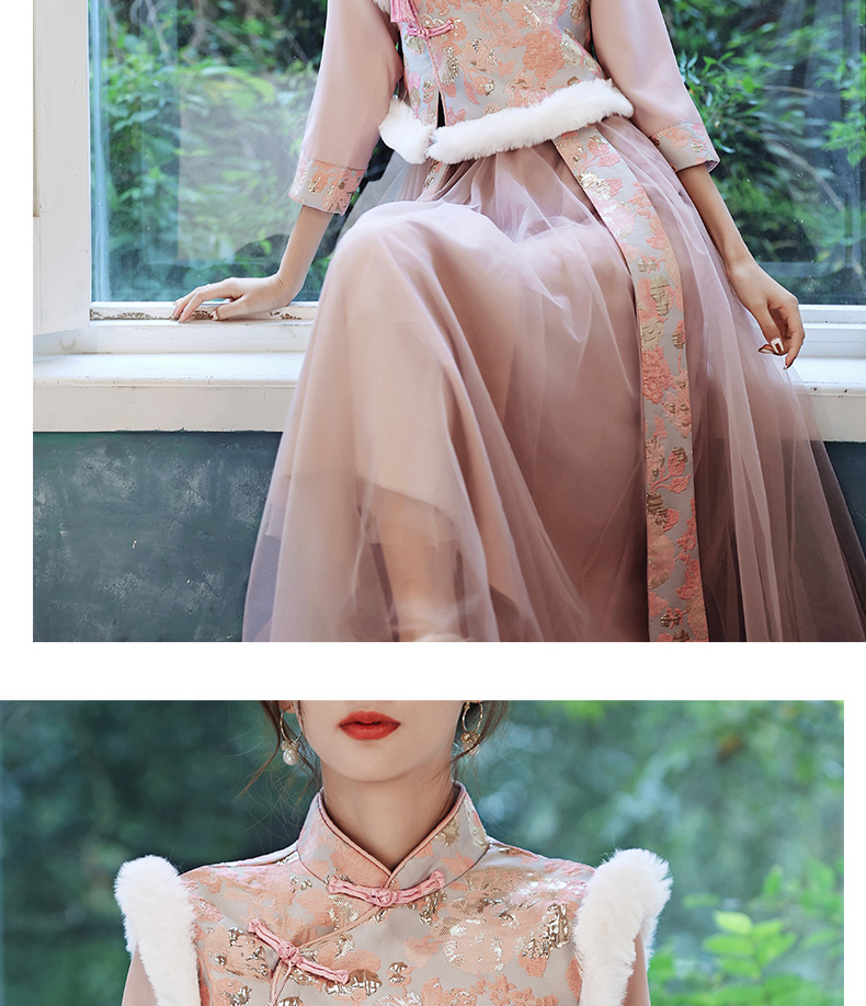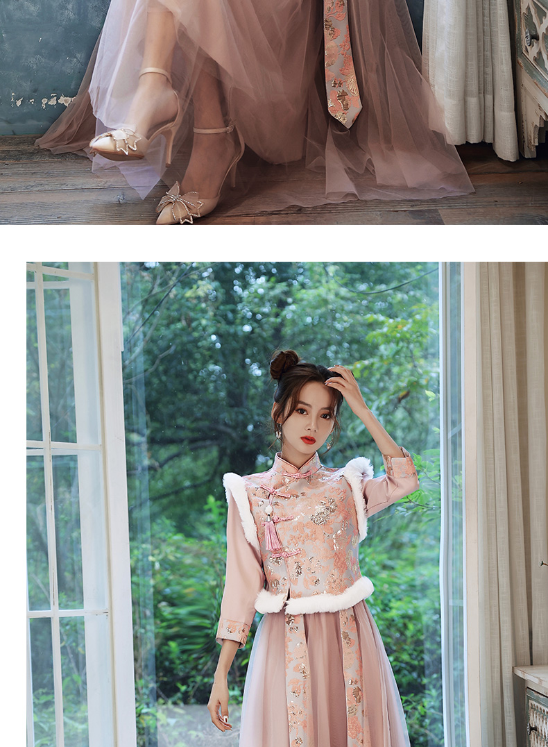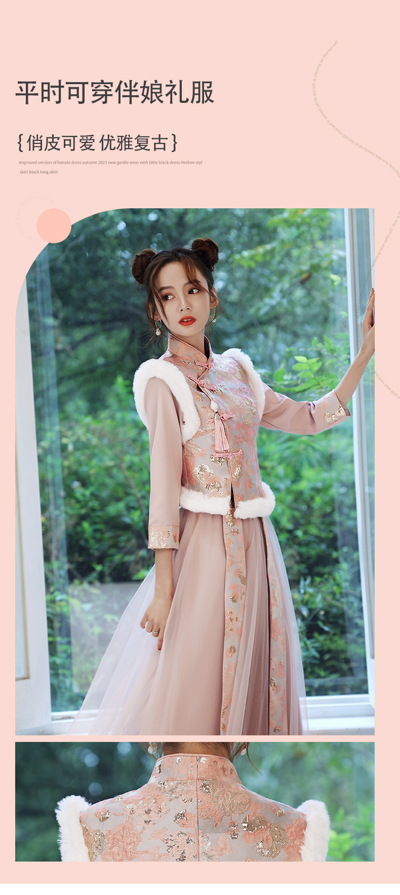 伴娘服中式中國風2022秋冬新款長款顯瘦姐妹裙伴娘團粉色晚禮服女