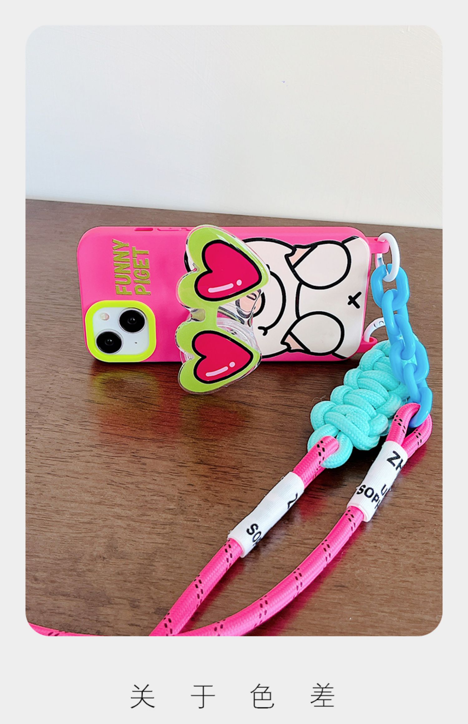 橙樹原創蘋果15promax手機殼帶掛繩卡通豬仔適用iphone14斜挎可背掛脖個性12pro帶支架可愛玫紅11新款13防摔