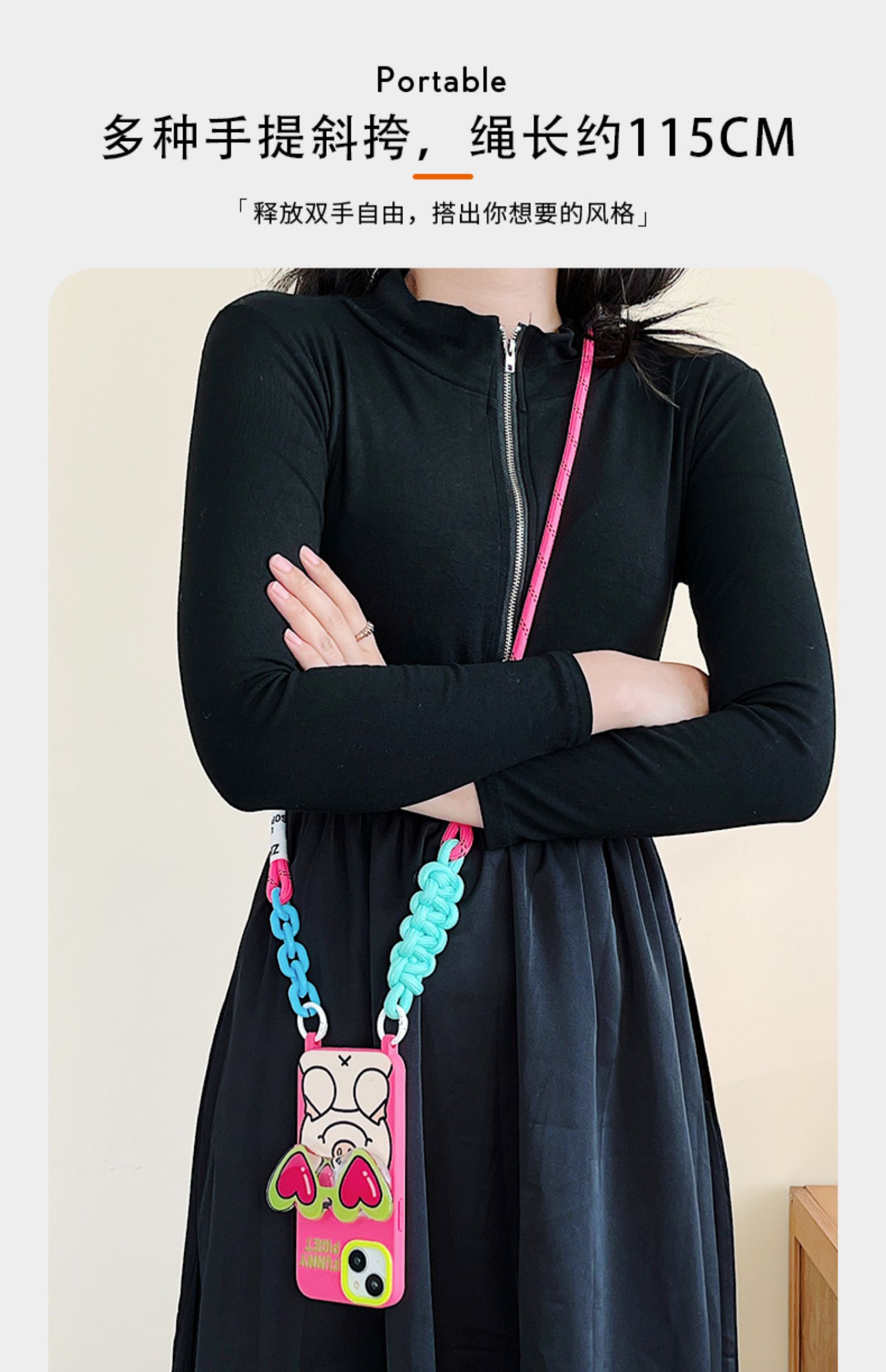 明星孫怡同款蘋果14promax手機殼斜挎卡通適用iphone13帶掛繩調節12新款四角開孔11粉色多巴胺少女15手提單肩