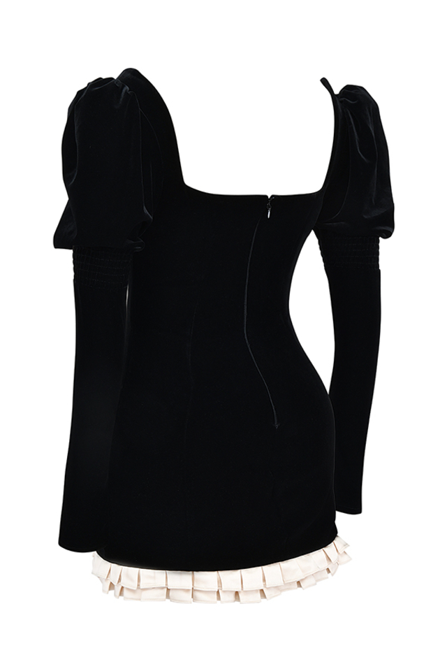 House of cb2023秋新款正品代購 天鵝絨長袖拼接復古修身連衣裙