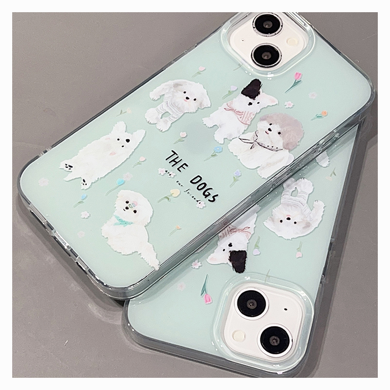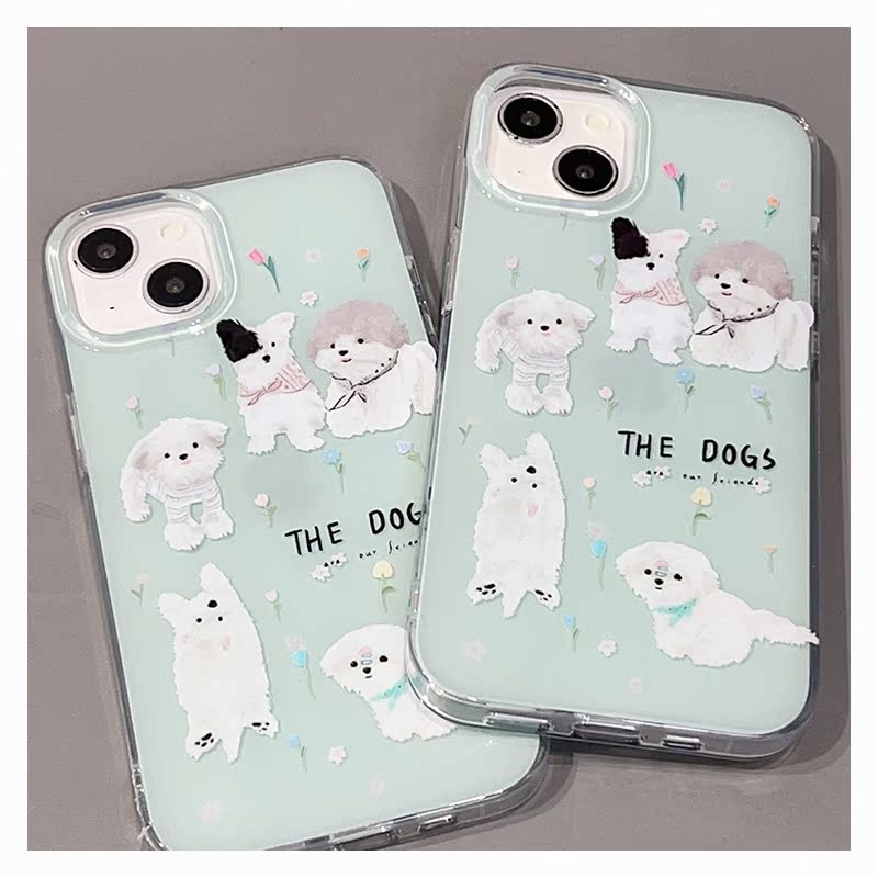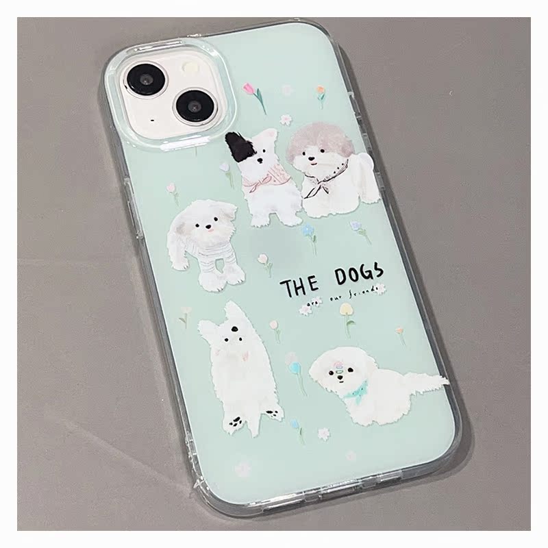 綠色花朵趣味小狗適用蘋果15promax手機殼iphone14女款15pro新款13可愛趣味創意卡通12軟邊硬殼pro防摔11雙層