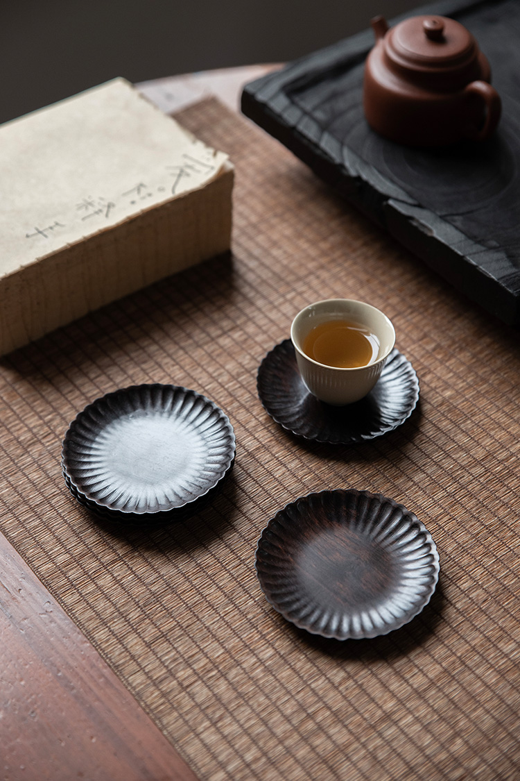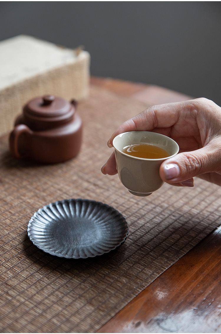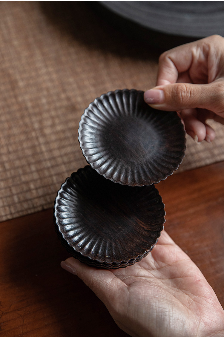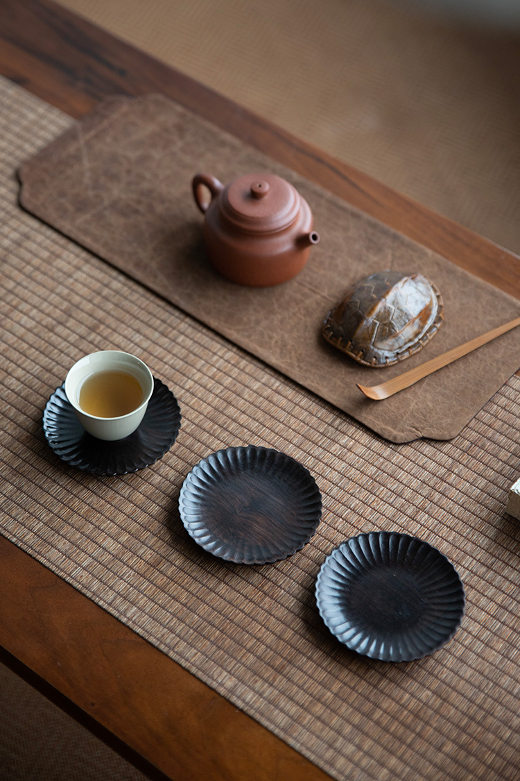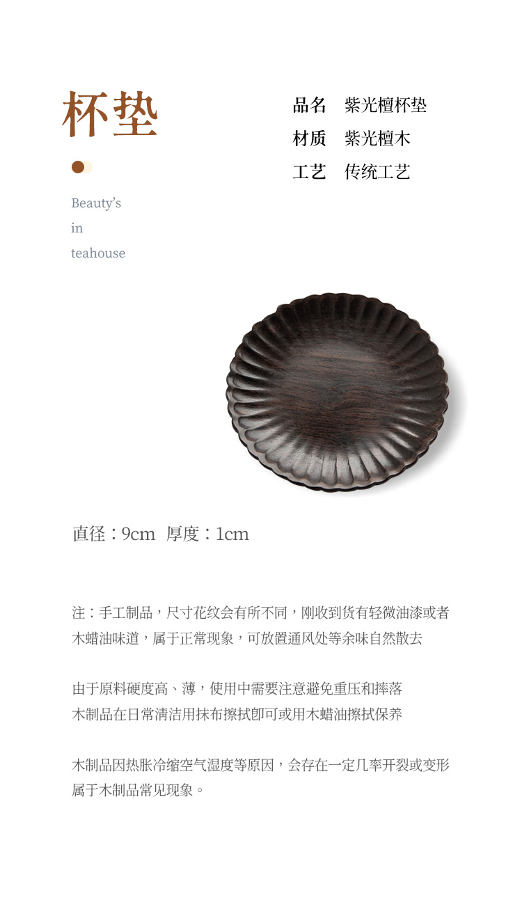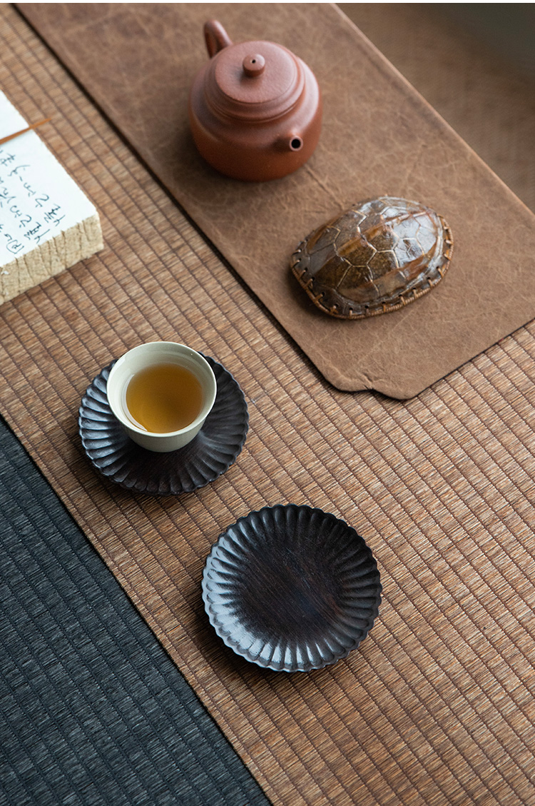 紫光檀實木杯墊干泡茶杯隔熱墊禪意主人杯托中式茶道零配整木雕刻