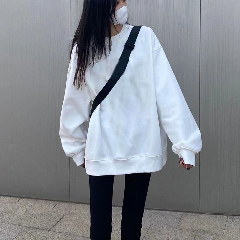 美式復古圓領衛衣女2023新款加絨加厚無帽長袖oversize慵懶風上衣