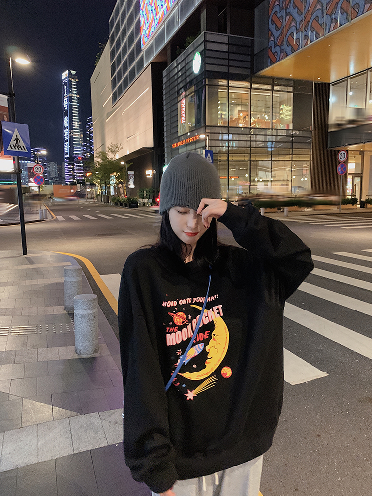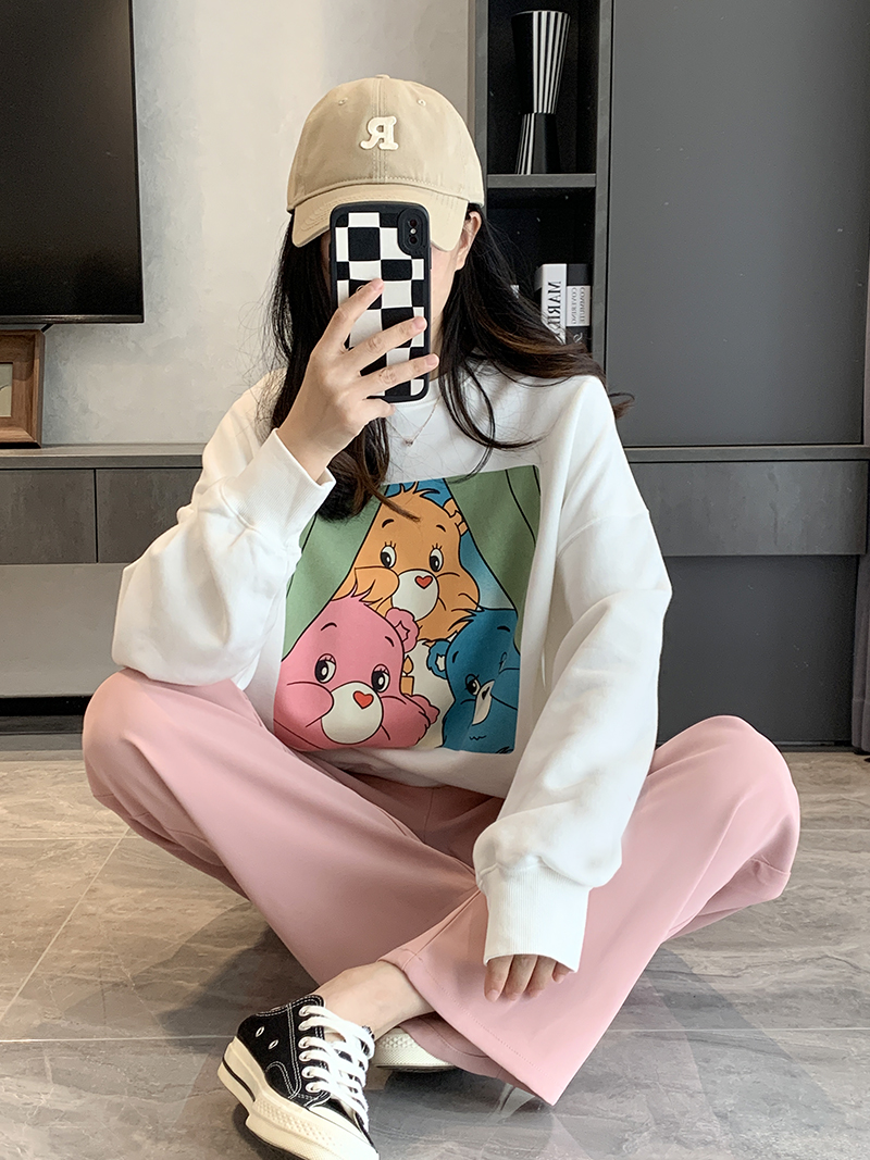 圓領卡通長袖衛衣女美式設計感小眾春秋季寬松大碼百搭外套上衣潮